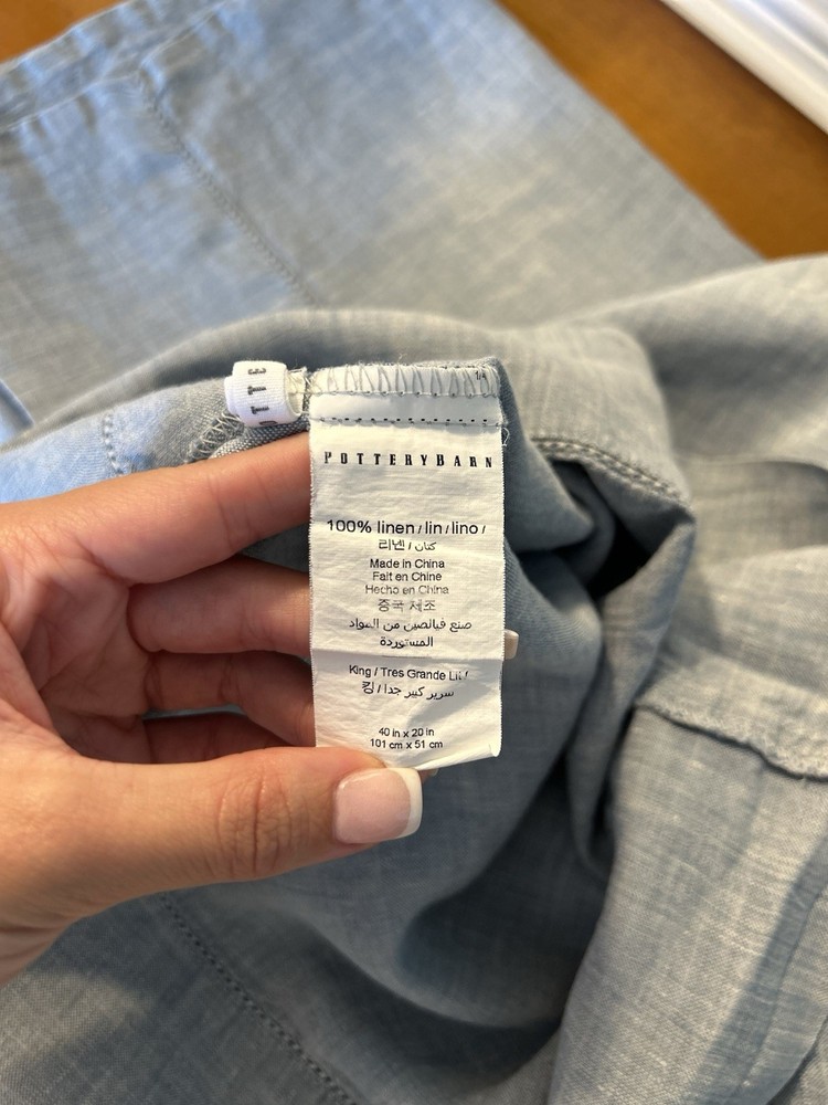 Pottery Barn Belgian Flax Linen Hemstitch KING Pillowcases (2) Chambray USED Size king - Set of two pillowcases in the color chambray - Pre-owned, no tears/stains/holes