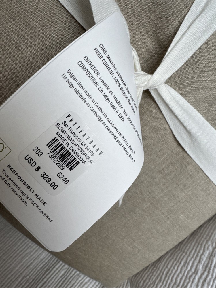 Pottery Barn Pottery Barn, a division of Williams-Sonoma, provides casual furnishings and textiles designed to delight and inspire the imagination. Size: King / Cal King Duvet Cover Fabric: 100% Belgian Flax Linen Care: Machine washable This posting is for a duvet cover, the inset and other items are not included. The photo's are of the actual item(s) Please ask all questions prior to purchase Stored in a smoke free environment Photos: We try our best to adjust the lighting to capture colors accurately; however colors can differ in photos depending on lighting and the devise used for viewing. Before purchasing, we recommend reviewing the item on the products website. Shipping: Shipping is offered to the confirmed address on record. Please make sure the shipping address is accurate before making a purchase. For your convenience tracking numbers are uploaded to eBay once shipped. Product may be shipped with Signature Confirmation. Returns: Please contact us if there is a problem with the item(s) you receive within 14 days of receipt of the item. Refunds are offered if returned in the original package (as packaged by the manufacture), unused and with tags attached. Shipping costs will be subtracted from the refund. International Shipping: eBays Global Shipping Program is offered for International Shipping. Import duties, taxes and charges are not included in the item price or shipping costs. These charges are the buyer's responsibility. Please check with your county's customs office to determine what these additional costs will be prior to bidding or buying. Thank you for looking!