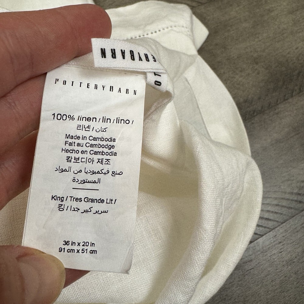 Pottery Barn Belgian Flax Linen King Pillow Sham (1) White Read Washed Gently used sham / has been washed There is a bit of wrinkling throughout from handling Dimensions: 36”x20”