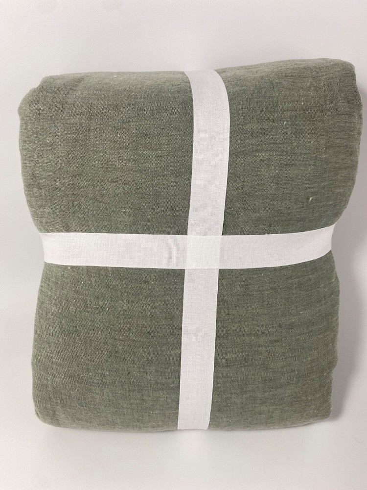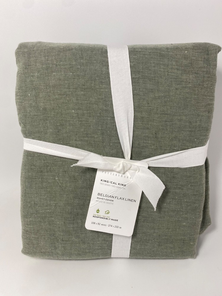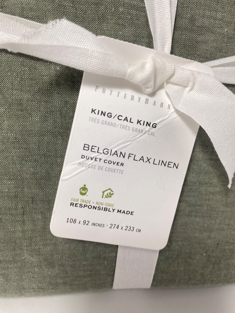 Pottery Barn Belgian Flax Linen King/Cal King Duvet Cover Loden Green NWT...