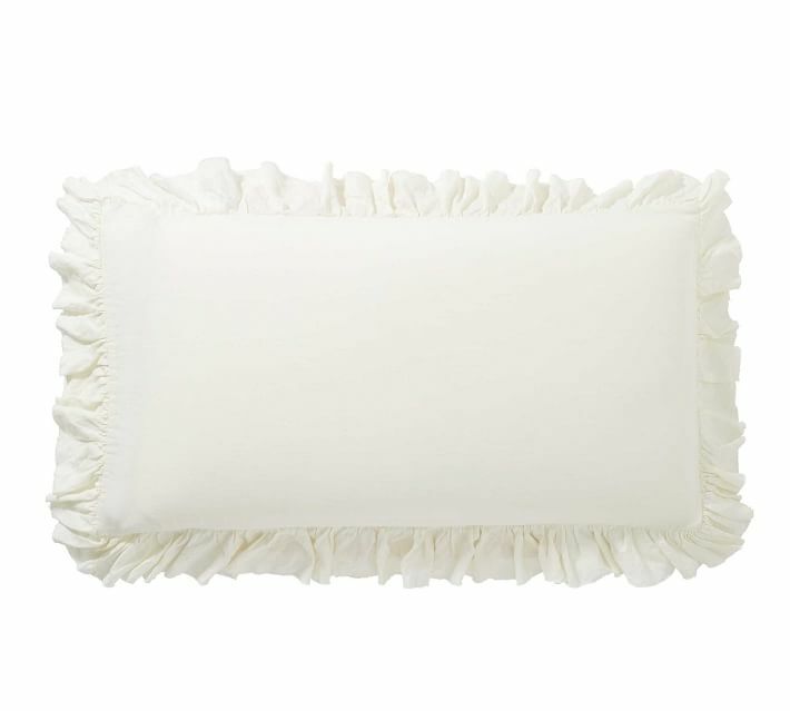 ***Pottery Barn*** Belgian Flax Linen Raw Edge Ruffle Pillow Sham ~ Lightly textured, soft and durable ~ King Sham: 20 x 36" Color: Classic Ivory Linen woven from 100% Belgian flax. Ruffle edges. Envelope closure. Pre-washed for a super soft hand feel. Machine wash. Inside tags removed to prevent returns. MSRP: $79.00 Please email any questions. Thanks for shopping by!