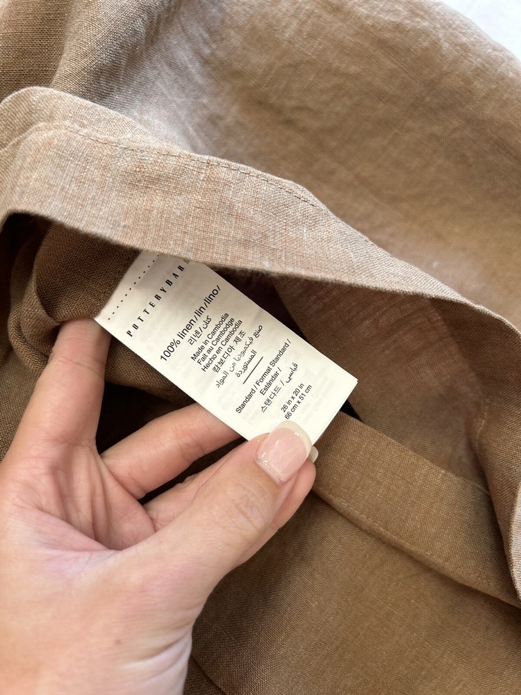 Pottery Barn Belgian Flax Linen STANDARD Shams (2) Toffee NWT OB Read! Set of two standard shams in the color toffee - Please reference photo #2 for a more accurate color of the shams. The first photo comes off darker. - New with tags / Open box