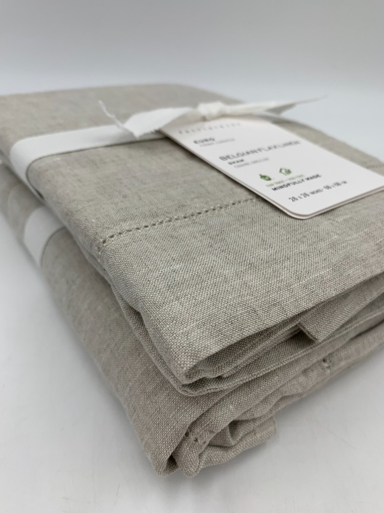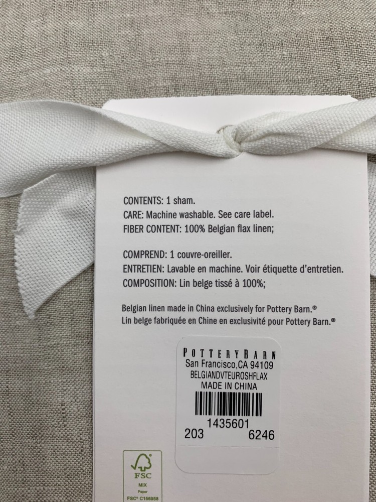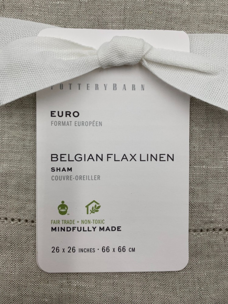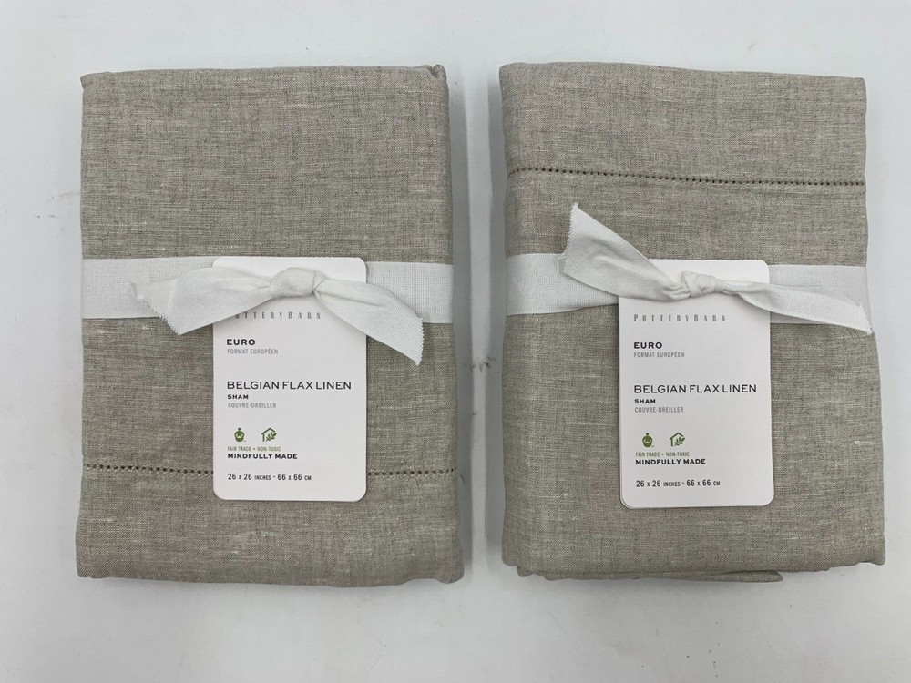 Pottery Barn Belgian Flax Linen Sham S/2 Euro Flax Item is brand new Auction includes 2 shams Linen woven from 100% Belgian flax; reverses to same. Specially washed for a supersoft hand feel. Ideal for warm or cool temperatures. Machine wash. Imported. DIMENSIONS Euro: 26" sq Flange: 2" CARE AND MAINTENANCE Linen will get softer with every wash. Machine wash in cold water separately on gentle cycle. Use only non-chlorine bleach, if needed. Line or tumble dry on a low temperature. Warm iron as needed.