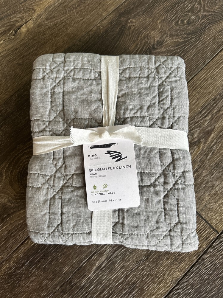 Pottery Barn Belgian Flax Linen Trellis King Quilted Sham Flagstone. One sham....