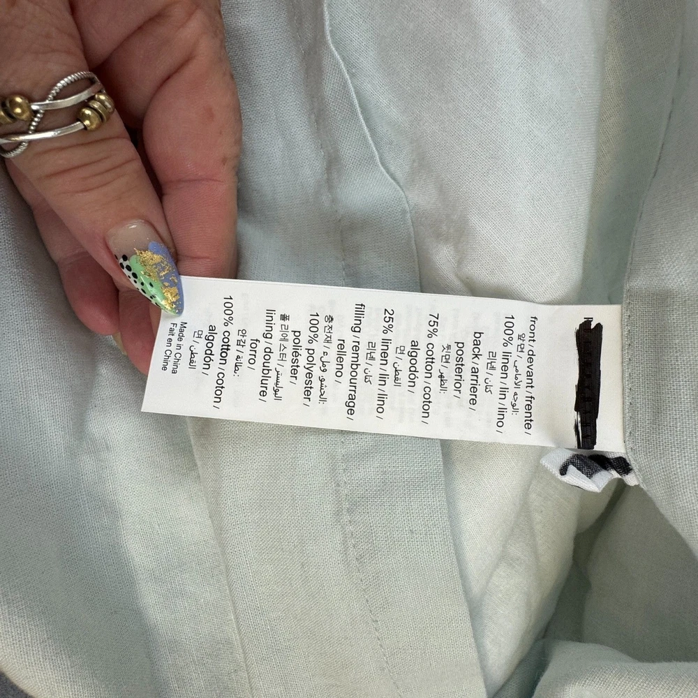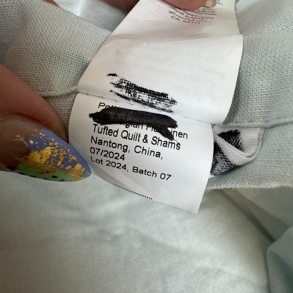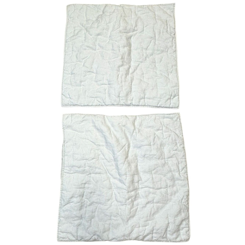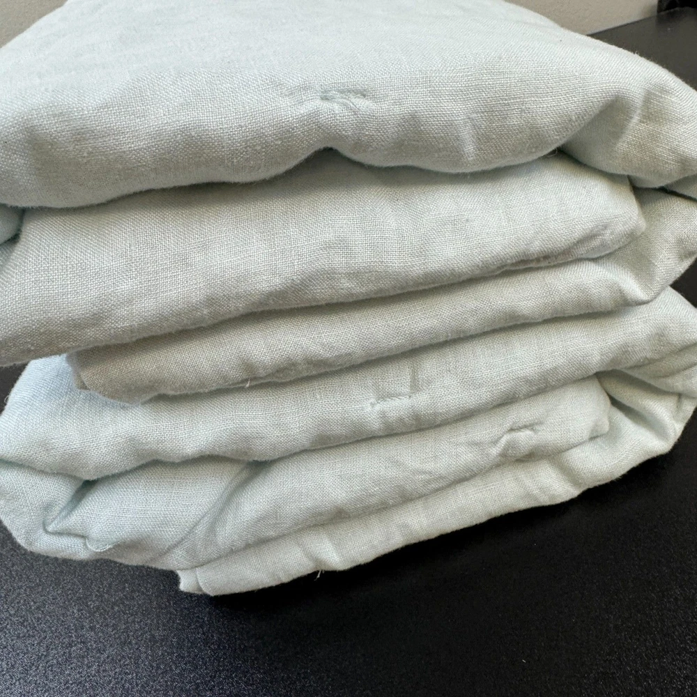 Pottery Barn Belgian Flax Linen Tufted Quilted Euro Sham Pair Blue Frost NWOT These are new without tag, open box items. Theses season-less linen Euro shams by Pottery Barn are made from 100% linen on the front and they reverse to 75% cotton and 25% linen. They are quiled and filled with 100% polyester batting. They have an envelope closure. They are in Blue Frost, a super light, neutral color. Color variations are inherent to natural fibers, and slight variations may occur. Seller Policies: Fast, reasonable shipping. I ship within 48 hours of payment. Returns accepted within 30 days in original condition. Buyer pays return shipping. Please ask questions prior to bidding. I want to make sure you are thrilled with your purchase!