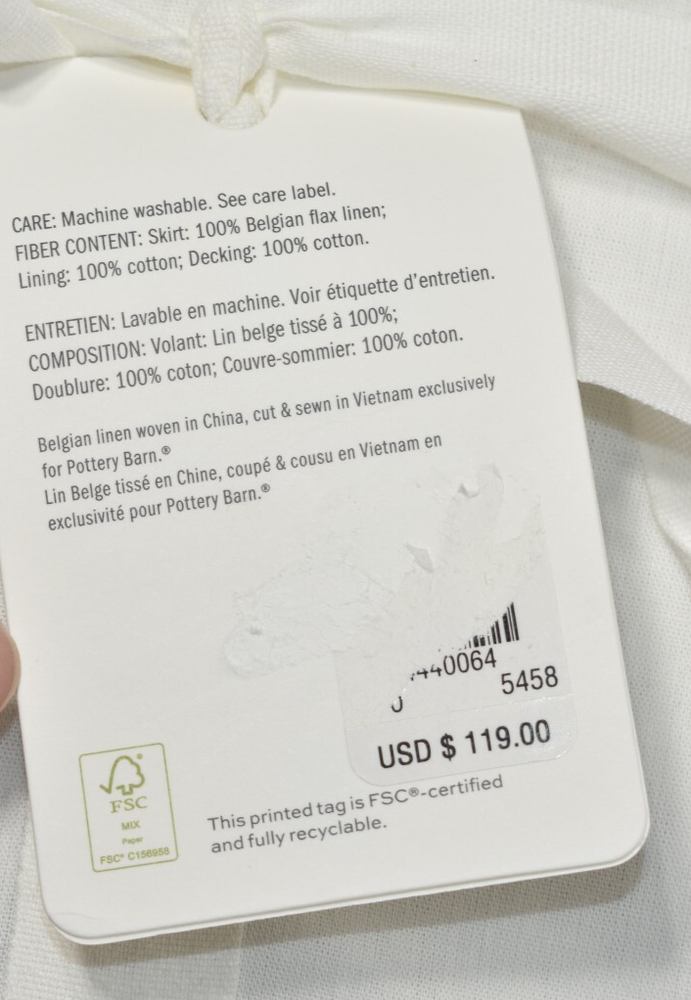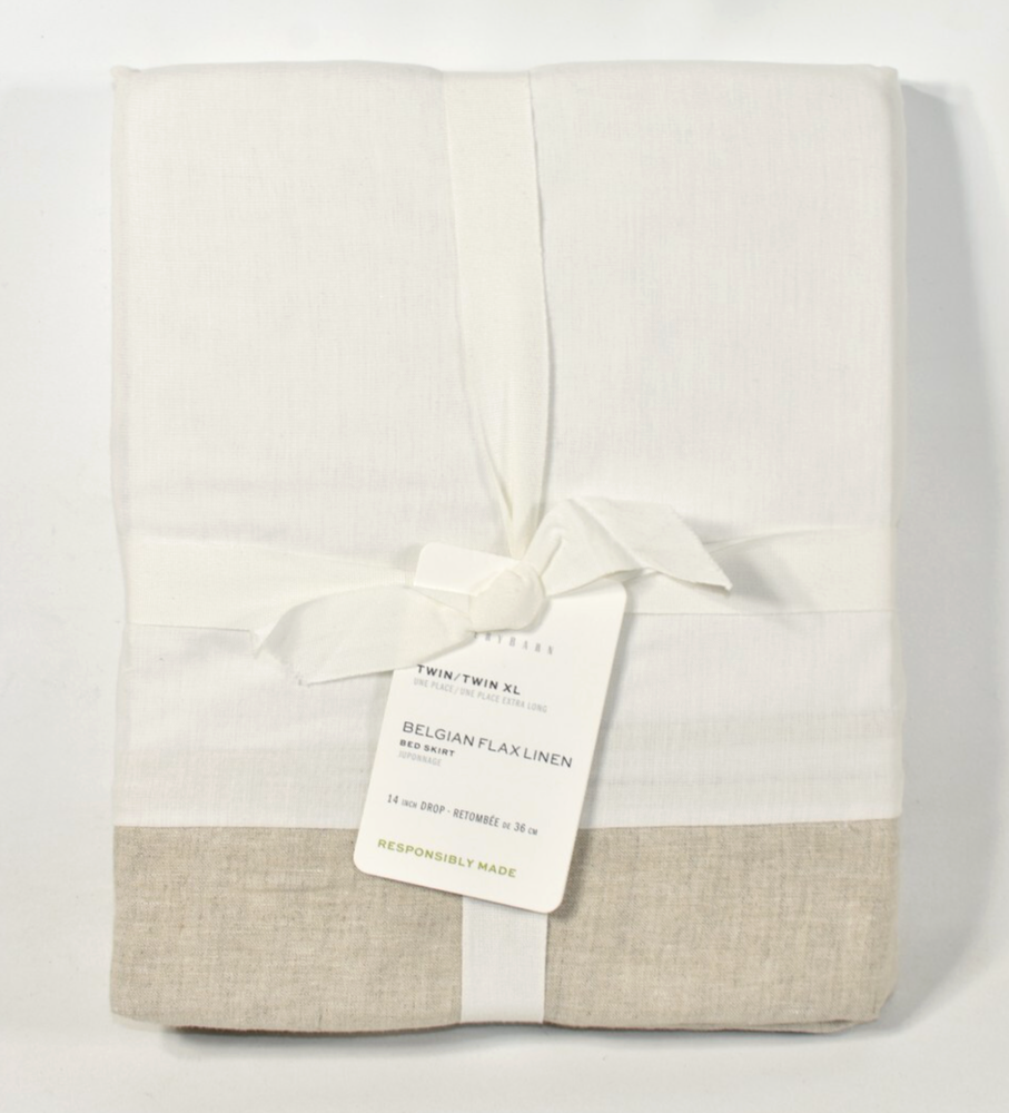 This bed skirt is a game-changer! The Belgian linen feels so luxurious and lays perfectly—no wrinkles or bunching. The natural flax color blends beautifully with any decor, and the 14" drop fits my bed just right. The quality is top-notch, as expected from Pottery Barn, and it arrived brand new with tags. Totally worth the price—love it!