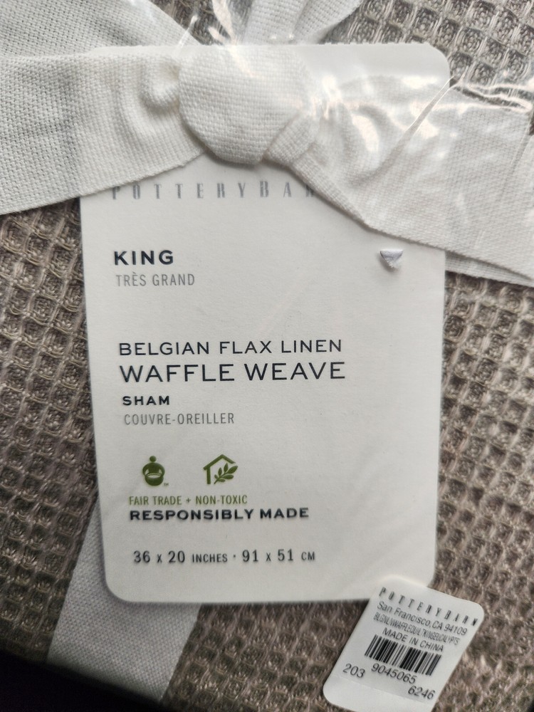 New, Factory Sealed -- Pottery Barn Belgian Flax Linen Waffle Weave King Pillow Shams in Flax color. Made from Belgian Flax Linen, these Rectangular shams feature a waffle weave pattern. . They measure 36" x 20" and can be machine washed and tumble dried. Perfect for the bedroom decor of adults. Item(s) in photo(s) is/are what you will receive. I will accept returns of any item that is not as shown in photos For multiple purchases, I will combine shipping (where possible) to save you on fees. Please be sure to inform me this is your intent so that I know to gather them for shipping. Thank you for Ebaying with me.