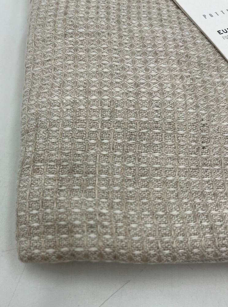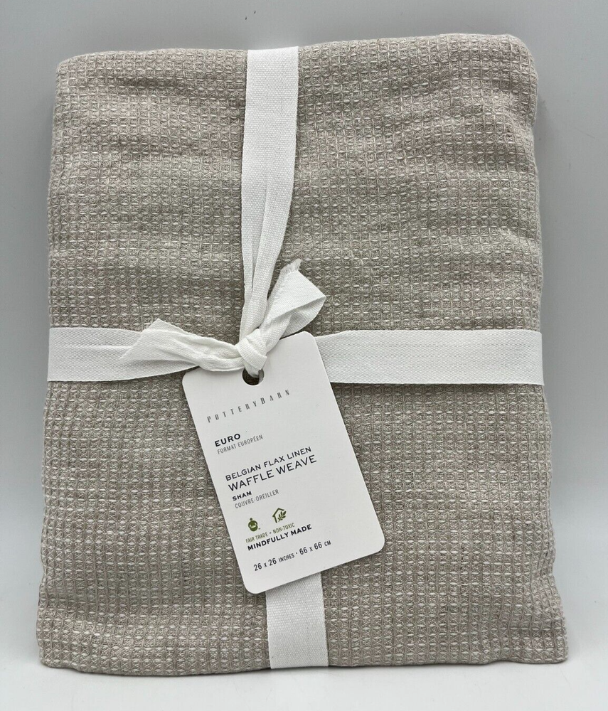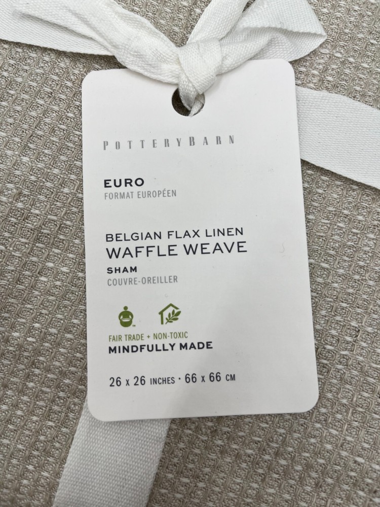 Pottery Barn Belgian Flax Linen Waffle Weave Sham Euro 26" Sq Flax #H99 Item is brand new. Auction includes 1 euro sham. Made with 100% Belgian Flax Linen. Reverses solid. Pre-washed for a super soft hand feel. Imported. DIMENSIONS Euro: 26"sq Flange: 2" CARE AND MAINTENANCE Machine wash on cold, gentle cycle. Only use non-chlorine bleach when needed. Tumble dry on low heat. Use iron on lowest heat when needed.