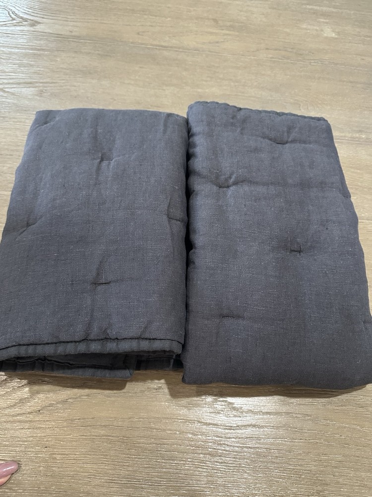 You are purchasing two Pottery Barn Belgian Flax linen tufted quilted standard shams color is ebony new without tags. attached tags have been marked out as shown in the photo....