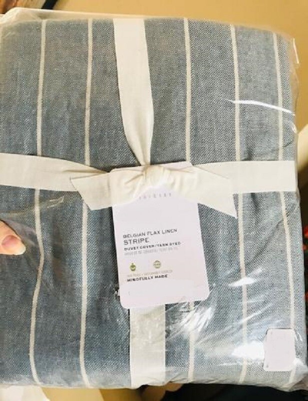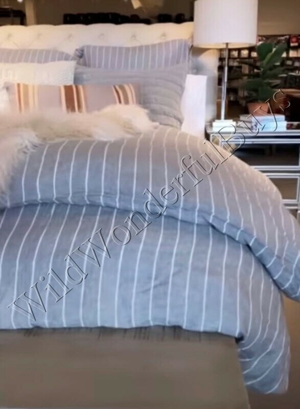 POTTERY BARN BELGIAN FLAX STRIPE DUVET Woven from the world’s finest Belgian flax, our linen bedding is prewashed for incredible softness—and only gets better with time. Lightly textured and cool to the touch, this natural-fiber fabric is prized for its durability, breathability and lived-in look. Our Belgian flax linen bedding is proudly made at a Fair Trade Certified™ factory. Linen woven from 100% Belgian flax. Breathable Belgian flax linen is ideal for warm or cool temperatures, and its durability lets you love it for years. Soft and cool to the touch. Duvet features a hidden button closure with inner ties that keep insert in place; sham features an envelope closure. Pre-washed for a super soft hand feel. Machine wash. Auction is for QUEEN duvet with TWO STANDARD SHAMS. Item is BRAND NEW in ORIGINAL PACKAGING! A d d i T i O N a l P h o T O s A v a i L a B Le U p O n R e Q u e S T PURCHASED DIRECTLY FROM POTTERY BARN. AUTHENTIC.