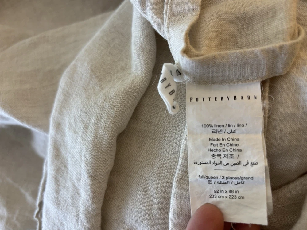 Pottery Barn Belgian Linen Beige Oatmeal Linen Duvet Cover Full/Queen Duvet ONLY Good used condition: clean, smoke and pet free home.