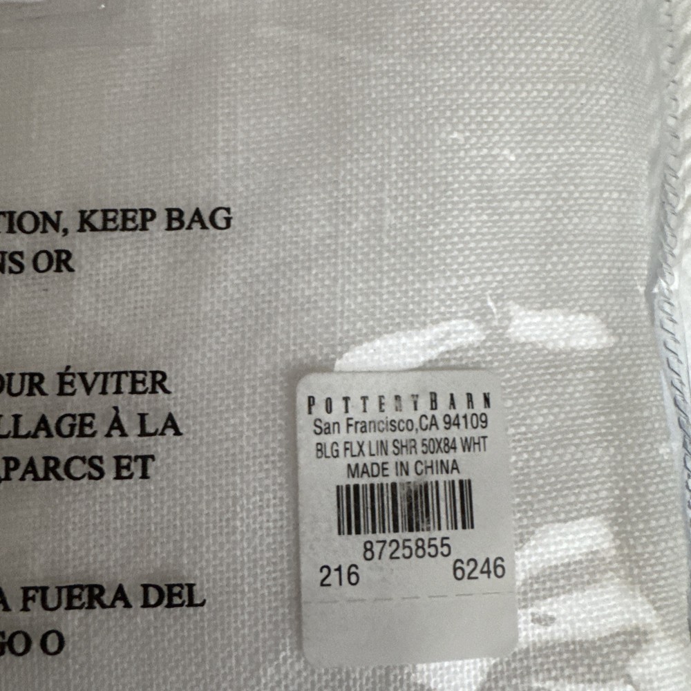 Pottery Barn Pottery Barn, a division of Williams-Sonoma, provides casual furnishings and textiles designed to delight and inspire the imagination. Condition: New Number of panel(s) included in post: **Set of 2 panels Retail Price: $178 Size: 50" x 84" Color: White Fabric: Belgian Flax Linen Lining: No lining Length includes height of pole pocket. Top: Pole Top Model: 8725855 Care: Dry clean only Sold as individual panels. The photo's are of the actual item(s) Please ask all questions prior to purchase Stored in a smoke free environment Photos: We try our best to adjust the lighting to capture colors accurately; however colors can differ in photos depending on lighting and the devise used for viewing. Before purchasing, we recommend reviewing the item on the products website. Shipping: Shipping is offered to the confirmed address on record. Please make sure the shipping address is accurate before making a purchase. For your convenience tracking numbers are uploaded to eBay once shipped. Product may be shipped with Signature Confirmation. Returns: Please contact us if there is a problem with the item(s) you receive within 14 days of receipt of the item. Refunds are offered if returned in the original package (as packaged by the manufacture), unused and with tags attached. Shipping costs will be subtracted from the refund. International Shipping: eBays Global Shipping Program is offered for International Shipping. Import duties, taxes and charges are not included in the item price or shipping costs. These charges are the buyer's responsibility. Please check with your county's customs office to determine what these additional costs will be prior to bidding or buying. Thank you for looking!