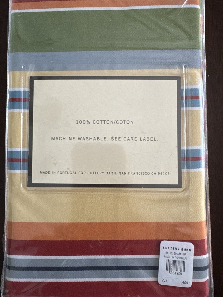One Belize pattern colorful stripes sham. "Vintage" PB branding....