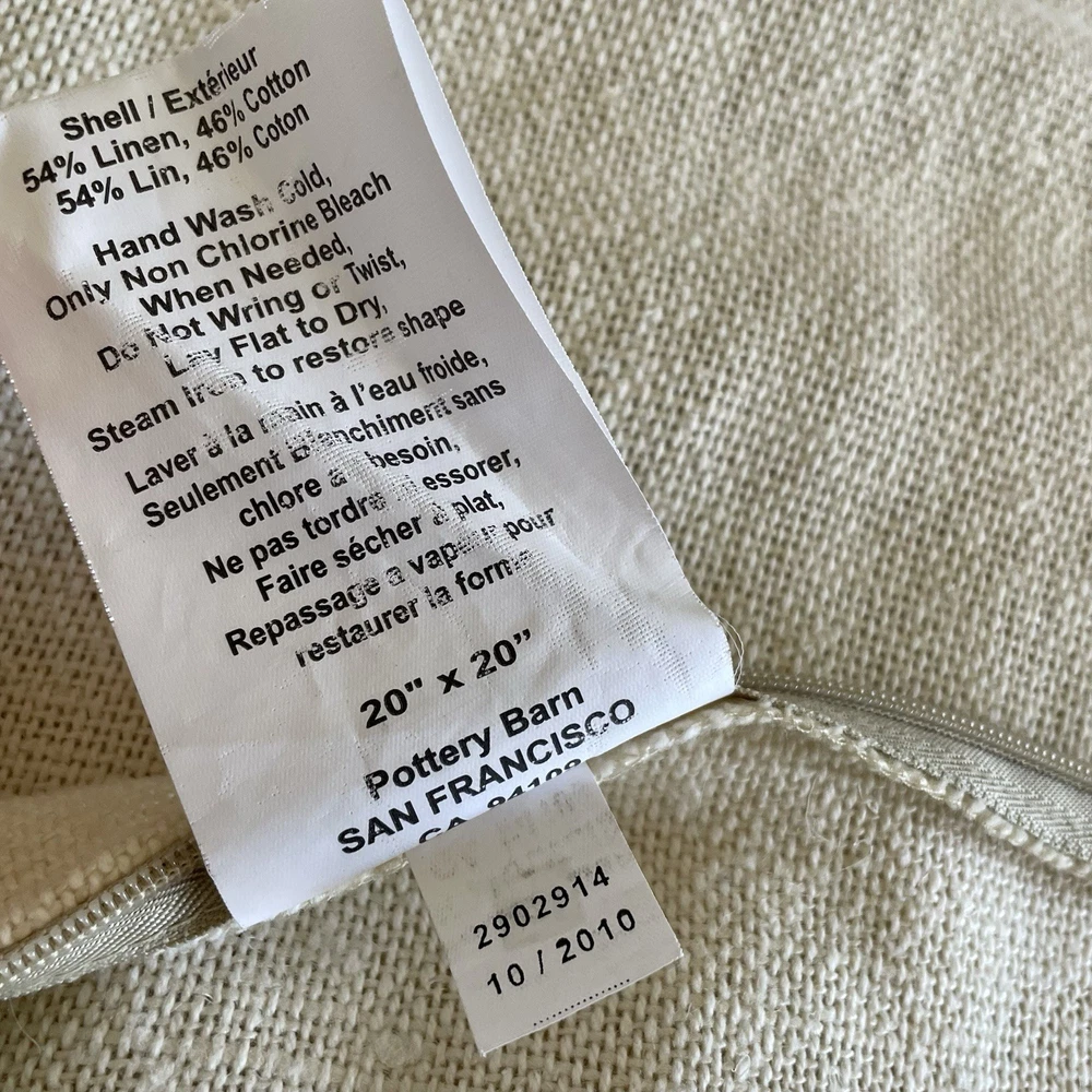 Pottery Barn Bird Pillow Cover 20x20 Beige Linen Cotton Square Textured Zip Up.