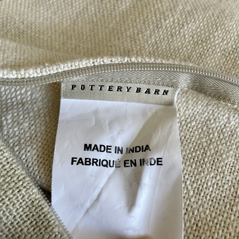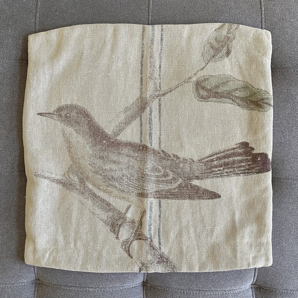 Pottery Barn Bird Pillow Cover 20x20 Beige Linen Cotton Square Textured Zip Up....