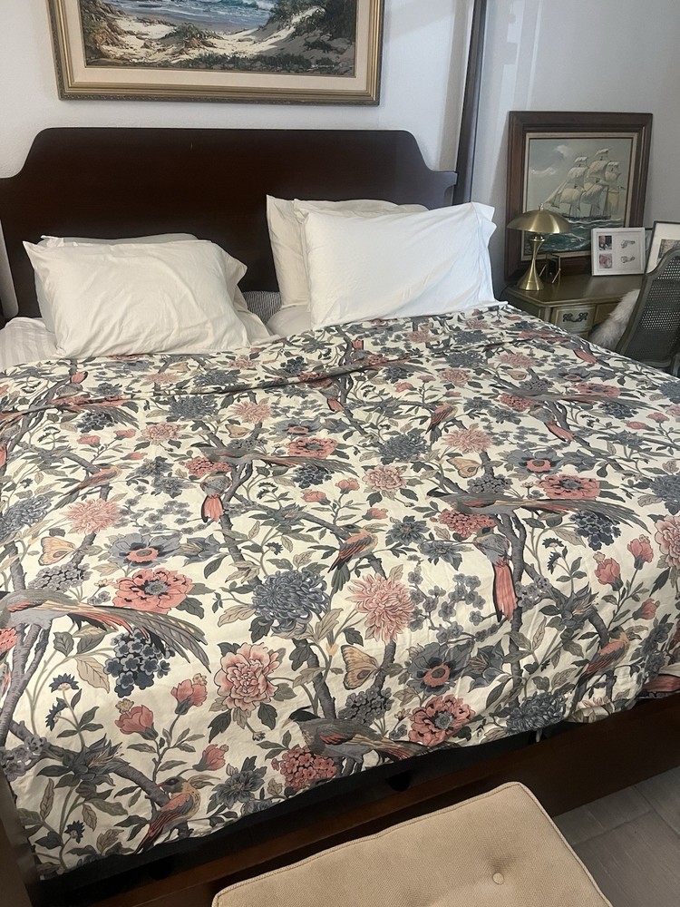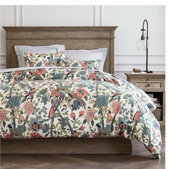 Pottery Barn Bloom Floral Ivory Duvet Cover ONLY Full/Queen Organic Cotton birds
