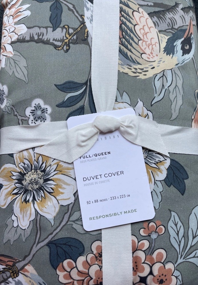 Pottery Barn Bloom Floral Sateen Duvet Cover Full/Queen - Green - NEW Condition: New with tags Size: Full / Queen F / Q Color: Green; multi Linen woven from 100% cotton; reverses to the same. Floral, flowers, spring, summer 12.99 shipping to the U.S. Thank you for your interest!
