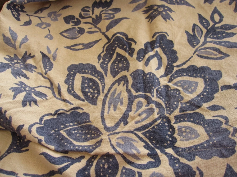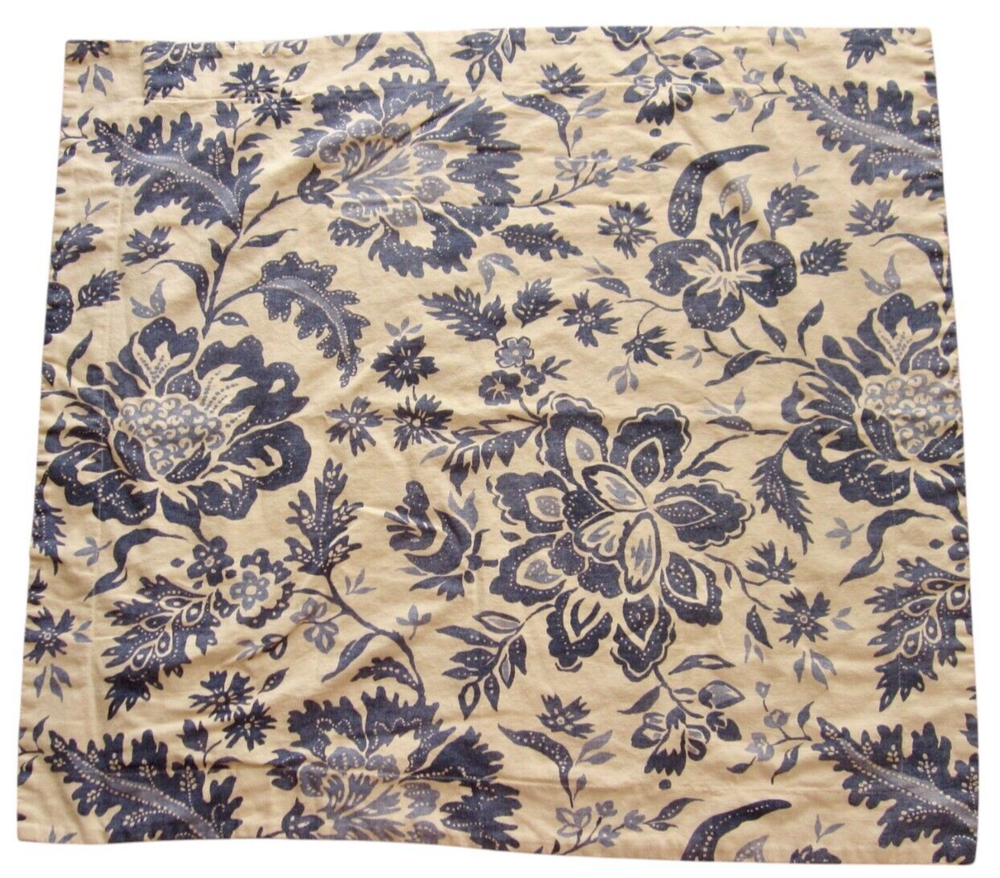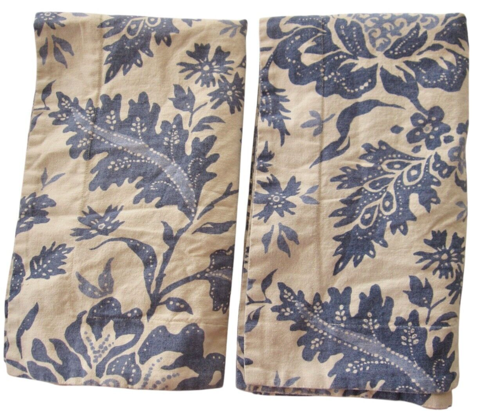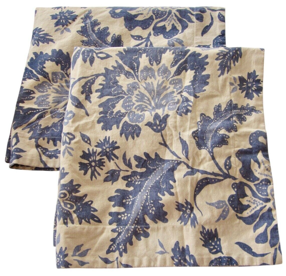 Beautiful pair of floral shams in shades of blue on light tan, woven in a luxurious linen/cotton blend. From Pottery Barn. Euro size Excellent condition. Fresh fabric, rich color, no stains or tears. ...
