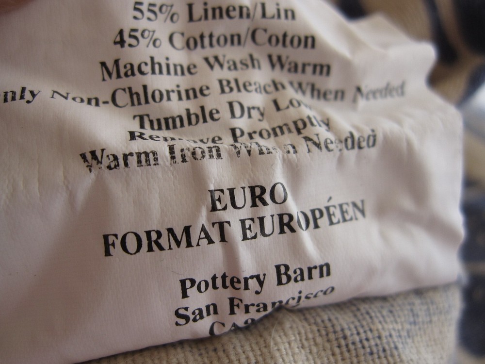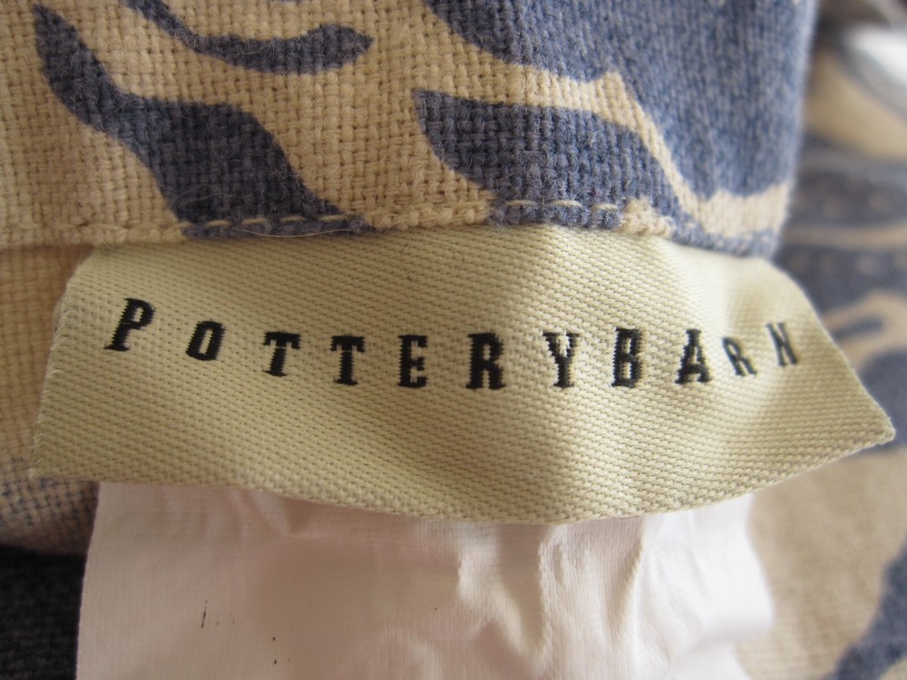 Beautiful pair of floral shams in shades of blue on light tan, woven in a luxurious linen/cotton blend. From Pottery Barn. Euro size Excellent condition. Fresh fabric, rich color, no stains or tears. Smoke free, pet free