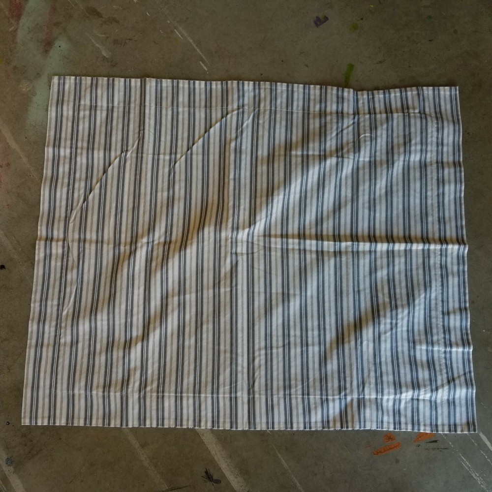 Beautiful! In very good condition, 100% cotton; blue and khaki stripes; has envelope closure; Will combine shipping for multiple items. Thanks for looking. All items are sold "AS IS" , they are pre-owned unless otherwise stated and will need to be washed ; if you have any questions about the item please ask before purchasing; No refund will be given on a missing part, wrong colors (ex. White not as white as customer wants), wrong pattern, dirt (I live in the desert so it's inevitable – it washes right out), size, grease pencil marks or tag holes. I try to describe item the best that I can and supply numerous photos, please look at photos closely -- I will be more than happy to take different photos, measurements, etc. if needed for you. Thanks for looking!
