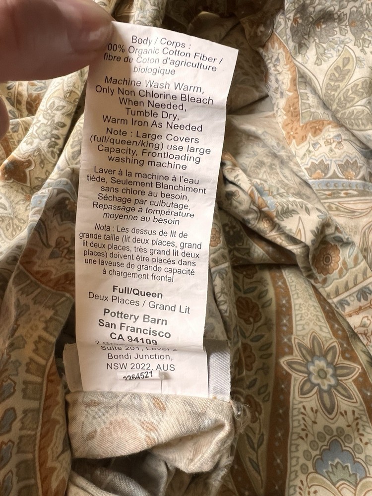 Pottery Barn Blythe Duvet Cover Full/queen. 100% cotton. Beige multi paisley. Button closure. All buttons intact plus extra. No known stains, snags, holes or smell. Thoughtfully packaged Shipped USPS ...