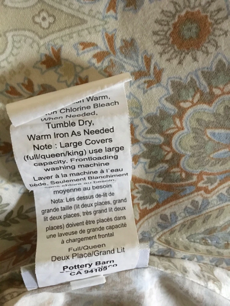 Pottery Barn Blythe Paisley Duvet Cover Full/Queen with 2 Standard Shams Beige Gold. Very good preowned condition. 100% organic cotton. No stains or rips. Please see all pictures well and enlarge for ...