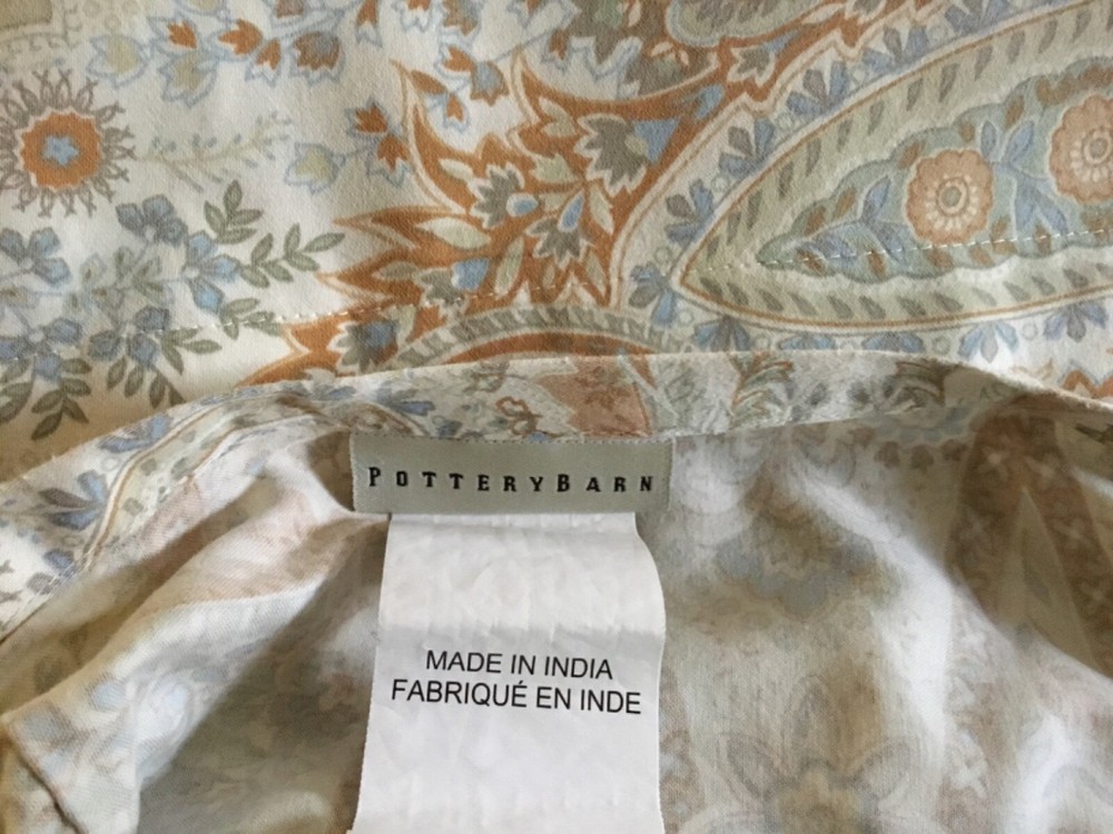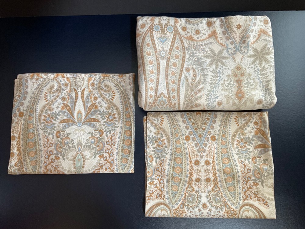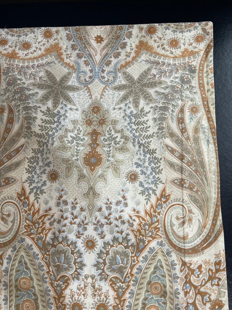 Pottery Barn Blythe Paisley Duvet Cover Full/Queen with 2 Standard Shams Beige Gold. Very good preowned condition. 100% organic cotton. No stains or rips. Please see all pictures well and enlarge for more details. Shelf.