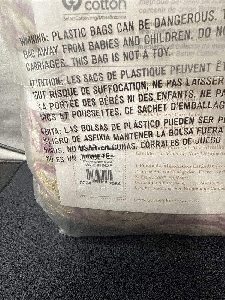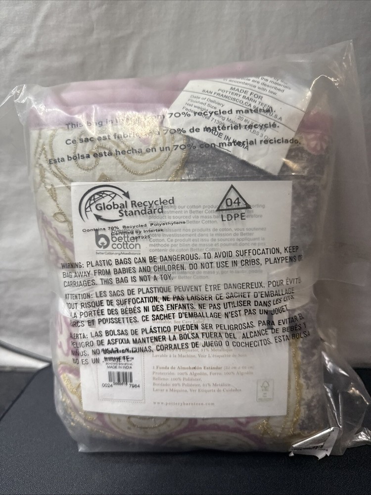 This product is a Pottery Barn pillow sham from the Bohemian Wonder collection designed for PB Teen. It is a standard size rectangular sham featuring a quilted design. The sham is part of the Bohemian style, perfect for adding a touch of bohemian flair to a teen's bedroom. The design is inspired by the character family One Piece, creating a unique and stylish addition to any bedding set.