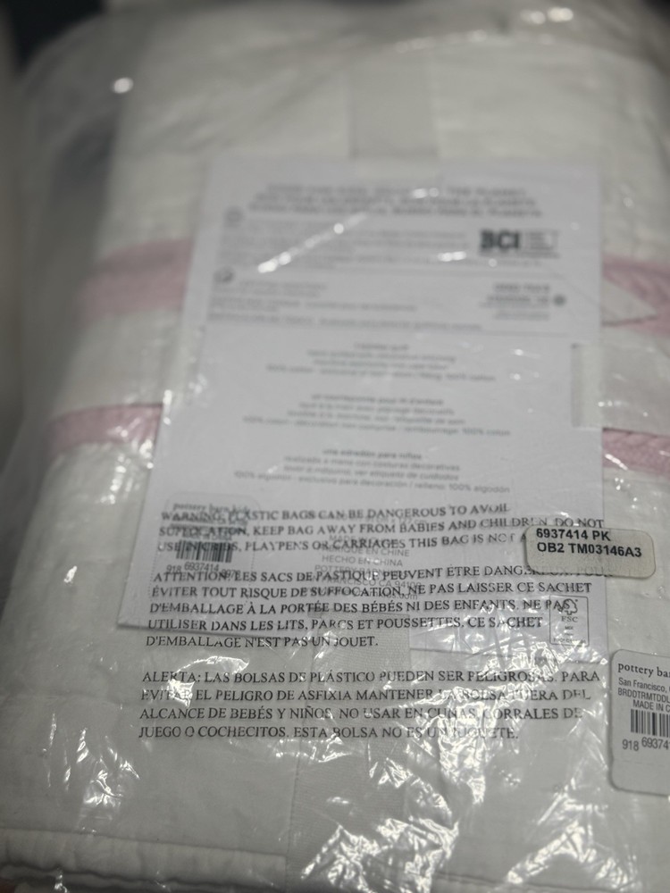 The Pottery Barn Braided Trim Quilt is a luxurious and versatile bedding option for toddlers, perfect for all seasons. Made with 100% cotton and featuring a quilted design, this queen-sized rectangular quilt offers added warmth and comfort. With a GSM ranging from 150 to 300, this quilt is machine washable for easy care. It also meets the STANDARD 100 by OEKO-TEX certification, ensuring quality and sustainability in its materials. The classic braid trim adds a stylish touch to this timeless piece, making it a beautiful addition to any bedroom decor.