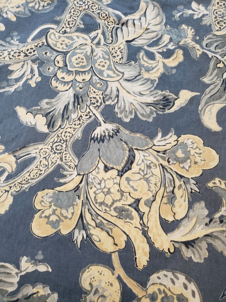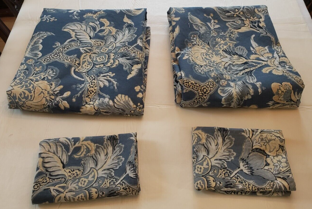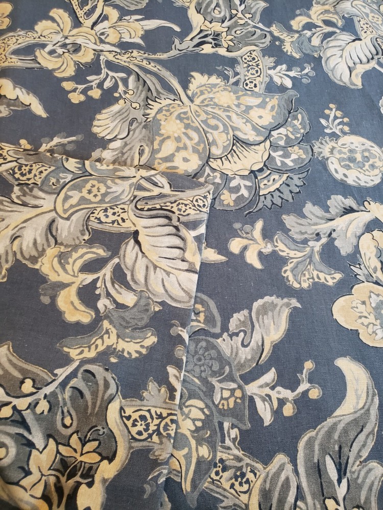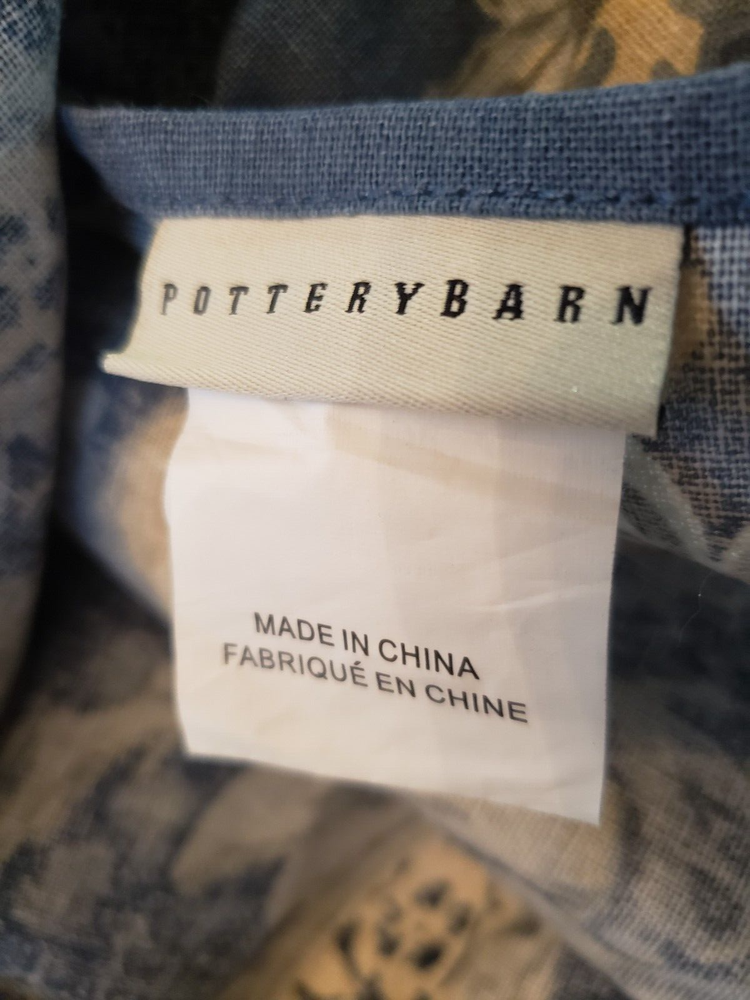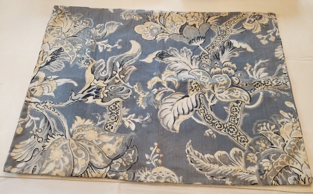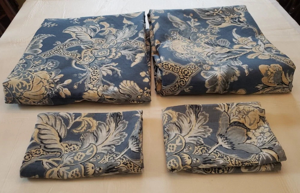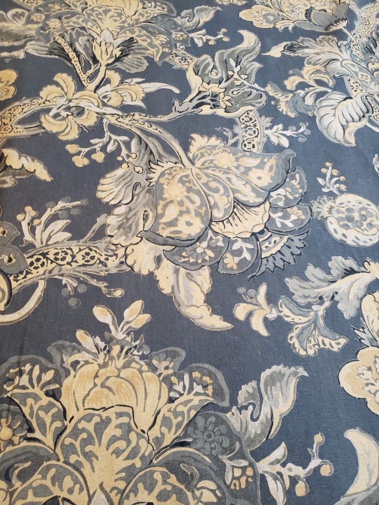 Lovely gently used Pottery Barn Bristol Palampore Jacobean TWIN Duvet Cover and Sham set. The duvet cover features a blue, yellow, tan and white floral pattern. Made of high-quality 45% cotton/55% linen blend. The duvet is reversible, with the same pattern on each side. Button closure. The duvet measures 87" long by 67" wide. The sham measures Wide 25" by 20" long. This is a 2008 pattern. Made in China. The shams have some fading due to sun exposure. One sham has minor fading on the back panel, the other sham has fading on the back panel and some fading on the front. Please see closeup photos. Two sets are available. No returns accepted Free shipping