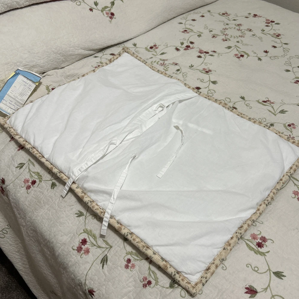 Item sample. Straps closure at the edge and at the middle of the pillow as shown in photos.