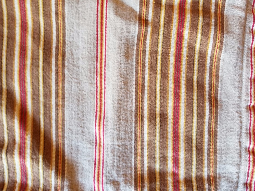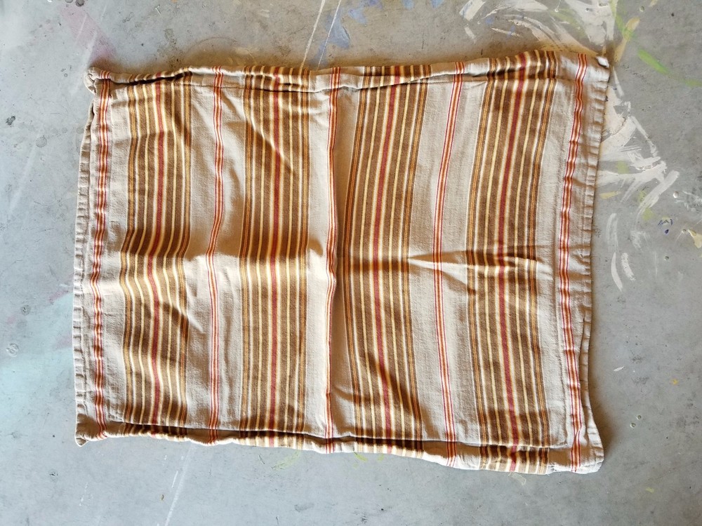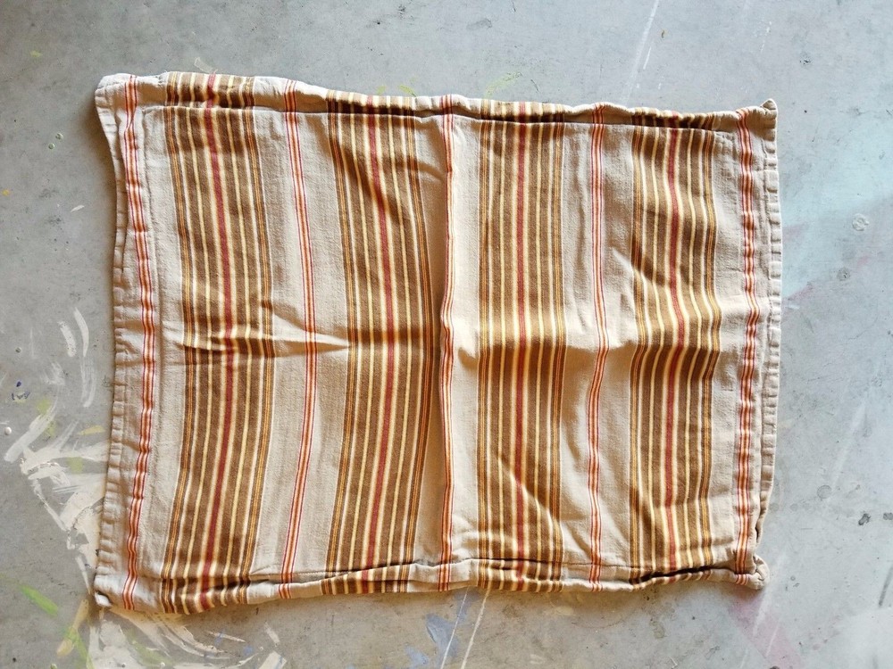 Beautiful! In very good condition! beautiful beige with red, brown, and yellow stripes; has envelope closure; Will combine shipping on multiple purchases. Thanks for looking! All items are sold "AS IS" , they are pre-owned unless otherwise stated and will need to be washed ; if you have any questions about the item please ask before purchasing; No refund will be given on a missing part, wrong colors (ex. White not as white as customer wants), wrong pattern, dirt (I live in the desert so it's inevitable – it washes right out), size, grease pencil marks or tag holes. I try to describe item the best that I can and supply numerous photos, please look at photos closely -- I will be more than happy to take different photos, measurements, etc. if needed for you. Thanks for looking!