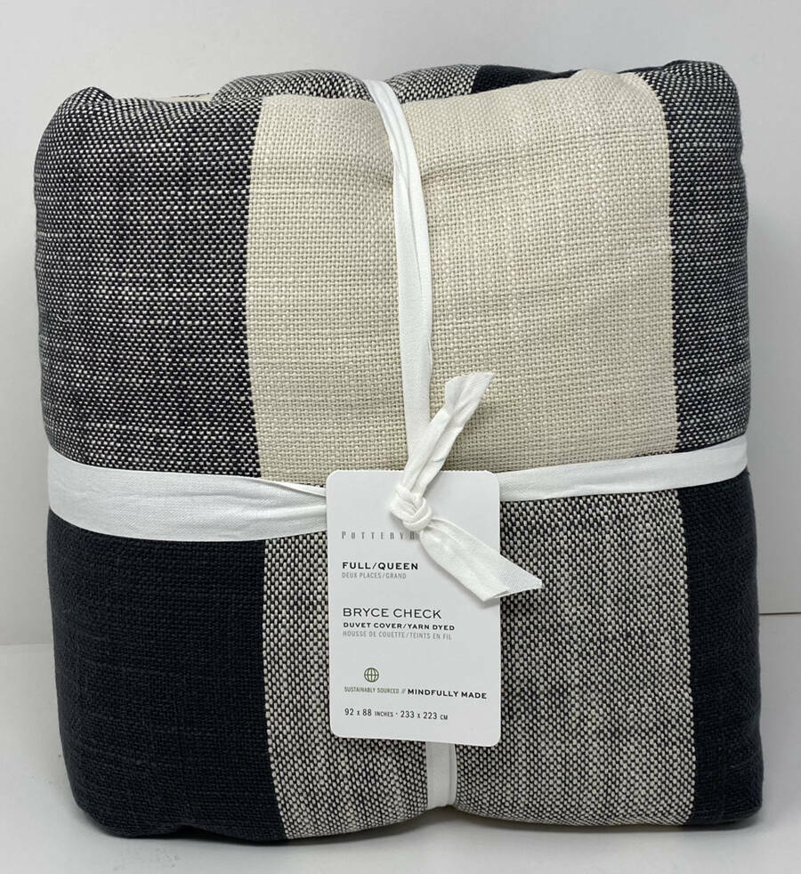 Pottery Barn Bryce Check FULL / QUEEN Duvet Cover ~ Charcoal Details: Front fabric of duvet is woven of 100% yarn-dyed cotton. Duvet reverses to solid natural color. Reverse fabric of duvet is 100% cotton. Duvet cover is finished with interior corner ties and a button closure to keep the insert in place. Insert sold separately. Machine wash. Imported. Size: Duvet Cover: Full/Queen: 88" long x 92" wide Care: Wash before first use. Machine wash in cold water; gentle cycle. Use only non-chlorine bleach when needed. Tumble dry on low heat; remove promptly. Warm iron as needed. Please read before you purchase: We take pride in our business, and we strive to do our best. We purchase brand new items or gently used items and we do our best to give accurate descriptions and photos. Pictures in the listing are of the actual item for sale. If you have any questions about an item, please contact us through eBay before you purchase. We try our best to resolve any issues as fast as possible. Please contact us right away if there are any issues with your purchase. We understand that colors may show up differently on different computers or devices. If you receive the item that doesn’t match your color scheme or décor, please feel free to return the item. If this is the case, please select Doesn’t Fit or Just Didn’t Like It as the reason for the return. If you select the reason Item Not As Described for a color issue, we will report you to eBay for resolution. Returns are accepted but the item must be returned within 30 days of the original delivery date. When we receive the returned item, inspect it, and it is found to be in the same condition that we shipped it in (brand new, unused, in the original packaging with tag attached) then we will provide a refund. Refunds are less original cost to ship the product. Returns that have any signs of use or handling will be reported to eBay; in these cases a partial refund may be given. Please see eBay’s return policies for more information. Thank you! Feedback: We strive to give you the best service. If you have any issues regarding your item, please contact us right away. Customer satisfaction is our priority. See my other listings for more great items! We accept MasterCard, Visa, Discover and American Express, PayPal through eBay's managed payment service. We can only ship to confirmed addresses provided at the time of sale ...so please make sure it is correct. We cannot modify the address after you have purchased the item. We provide fast shipping! Your item will be shipped within 2-5 business days via UPS Ground or USPS priority mail. UPS can NOT deliver to PO boxes, so please provide us with a physical street address. Once your item is shipped you will receive an email with your tracking number. We are HAPPY to combine shipping on items that can be combined. We cannot offer Flat Rate or Free Shipping to HI, PR and AK. Please email us for shipping rates to HI, PR and AK. Signature at delivery may be required for some items over $250. International bidders: We do offer SOME of our auctions to international buyers. Shipping charges in the listing only cover the US shipping costs. Extra shipping charges are required for international destinations. The customer is also responsible for any customs charges incurred. We will NOT mark international packages as a GIFT....so please do not ask. Thank you! txzj pxzj131 txzj-11 txzj39 txzj115