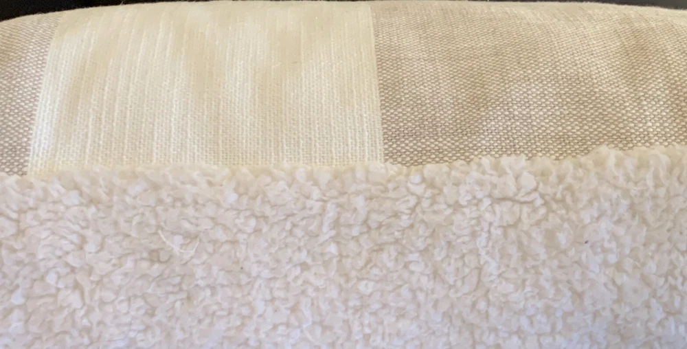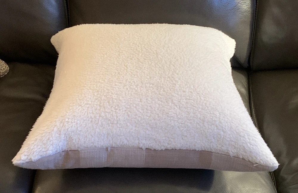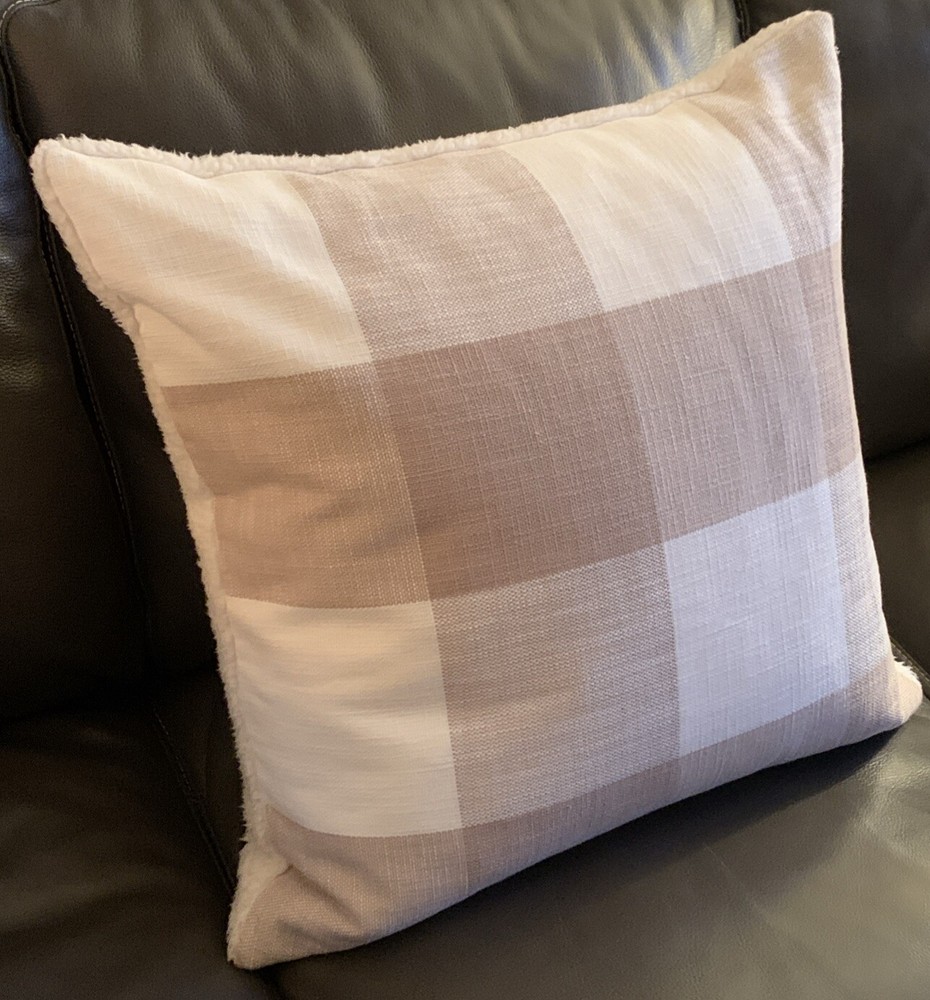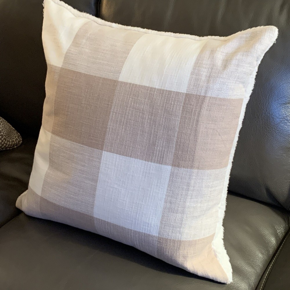 Elevate your living space with the inviting charm of a Pottery Barn Bryce Check Sherpa Back pillow cover. This 24 x 24 inch square pillow cover boasts a timeless checked pattern in soothing beige tones, perfect for adding a touch of farmhouse flair to any room. Crafted from 100% cotton with a 100% feather insert, it promises both comfort and durability. The cover features a concealed zipper closure for easy removal and is machine washable, ensuring hassle-free maintenance. Its plush sherpa back adds an extra layer of texture and warmth, making it an ideal accent for your bedroom, living room, or guestroom. With its blend of style and functionality, this pillow cover brings the coziness of the cottage indoors. Please see the pictures for views from all sides... Note: At the start of this listing we had 2 of these available. So, if you need 2 pillows, please indicate Qty of 2 when ordering.
