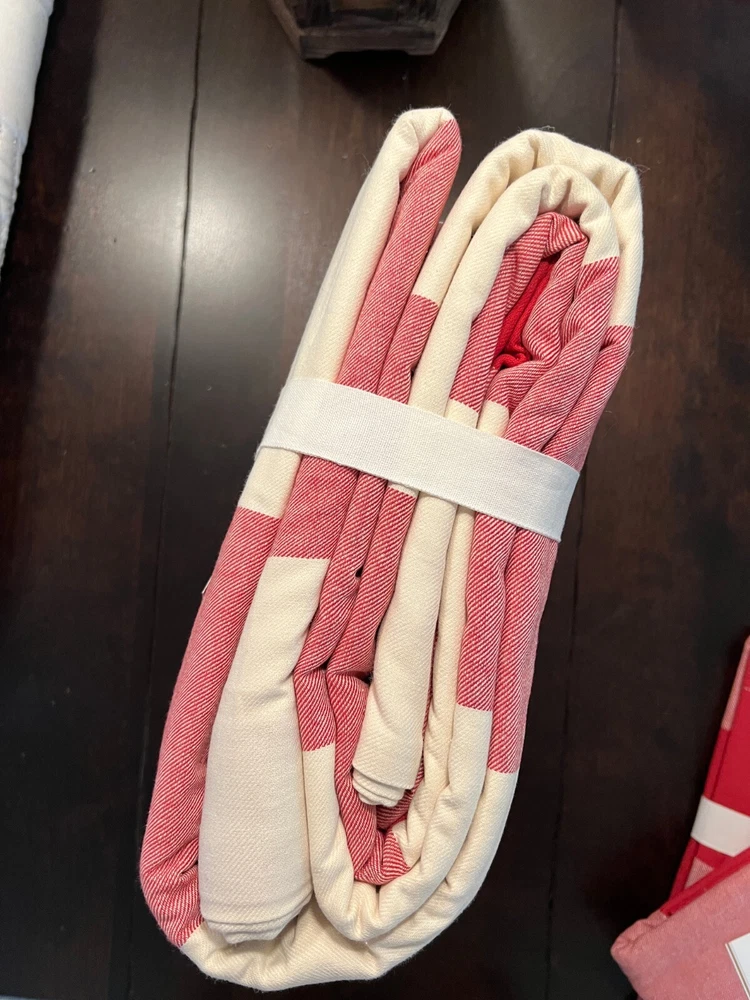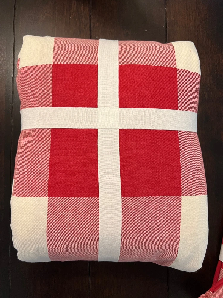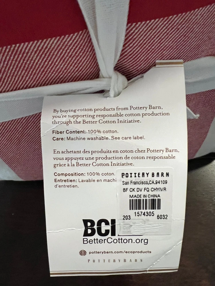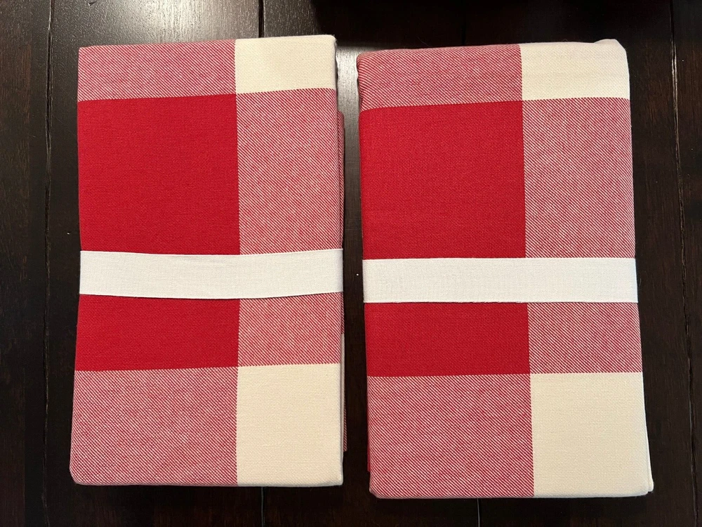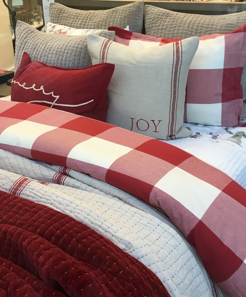 Pottery Barn Buffalo Check Duvet & Shams New with tags Set Includes: One Full Queen Duvet cover and two Standard Shams Color: Cherry Red and Ivory Please let me know if you have any questions. no returns. We took our inspiration from your coziest plaid shirt to design this inviting bedding. The bold punch of color makes a statement in your room Made of 100% cotton Duvet cover and sham reverse to self Duvet has a hidden button closure; sham has an envelope closure. Machine Wash tumble dry Full/Queen: 88" long x 92" wide Standard: 20" high x 26" wide