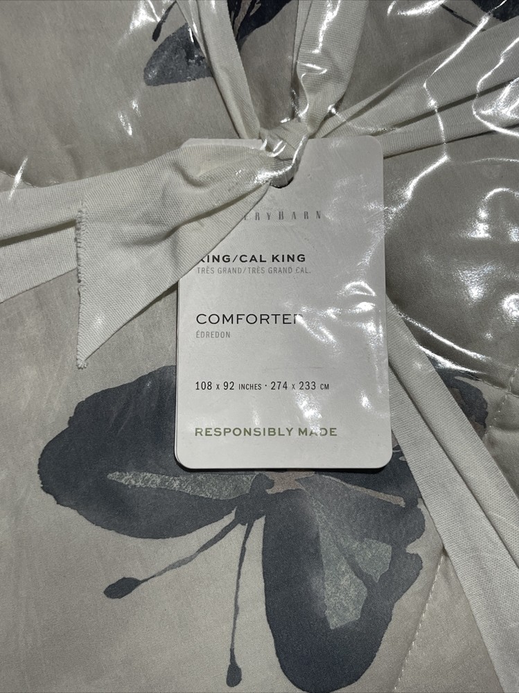 Condition: New with tags Size: King / Cal King Color: PB says, " A symbol of renewal, our butterfly comforter and shams are a fitting choice for refreshing the bed as one season transitions to the next. Each piece is woven from pure organic cotton and printed with fluttering butterflies – a pattern designed by artisans in our San Francisco studio – in loosely painted brushstrokes that mimic the look of a watercolor painting." Made from 100% cotton percale. Reverses to same. 200-thread count. 17.99 shipping to the U.S. Thank you for your interest.