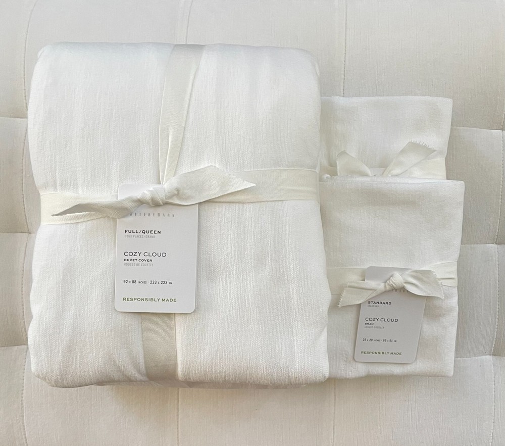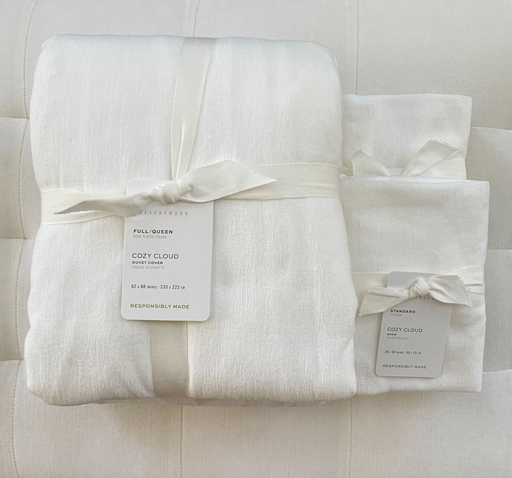 Pottery Barn COZY CLOUD Full/Queen Duvet Cover & Two Standard Shams ~White~ New with Tags PB describes as: One touch was all it took to have us falling in love with this bedding. Made of supremely soft cotton chenille, it has a just-right weight that makes it perfect for year-round layering. Made from 100% Cotton Yarn Dyed Chenille; reverses to 100% cotton sheeting. Yarn-dyed fiber has incredibly rich color that holds its vibrancy over time. Reverses to solid. Duvet features a hidden button closure with inner ties that keep insert in place; sham features an envelope closure. By choosing our cotton products, you’re supporting our investment in Better Cotton’s mission. This product is sourced via mass balance and therefore may not contain Better Cotton. OEKO-TEX® STANDARD 100: tested for 1000+ harmful substances. 14.HUS.42449 HOHENSTEIN. Inserts are sold separately. Imported. Full/Queen Duvet: 88" l x 92" w Standard Shams: 20" h x 26" w Pet & Smoke free Ships within 1 business day Thank you!