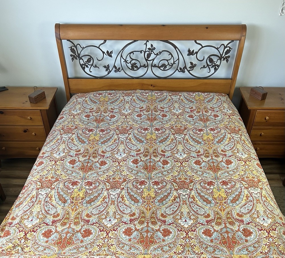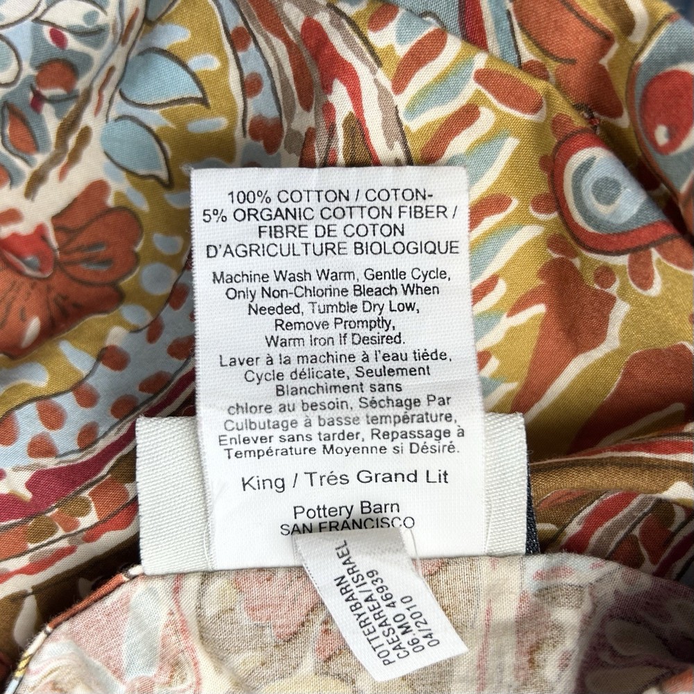 Pottery Barn Caesarea Duvet Cover Red, green, gold and black paisley design gives this a Bohemian vibe 100% cotton Listing is for One KING duvet cover The duvet cover has a button closure Same pattern on both sides Pre-owned condition Gentle signs of normal wear may be present No rips, holes, tears or stains Smoke free, dog friendly home Mii
