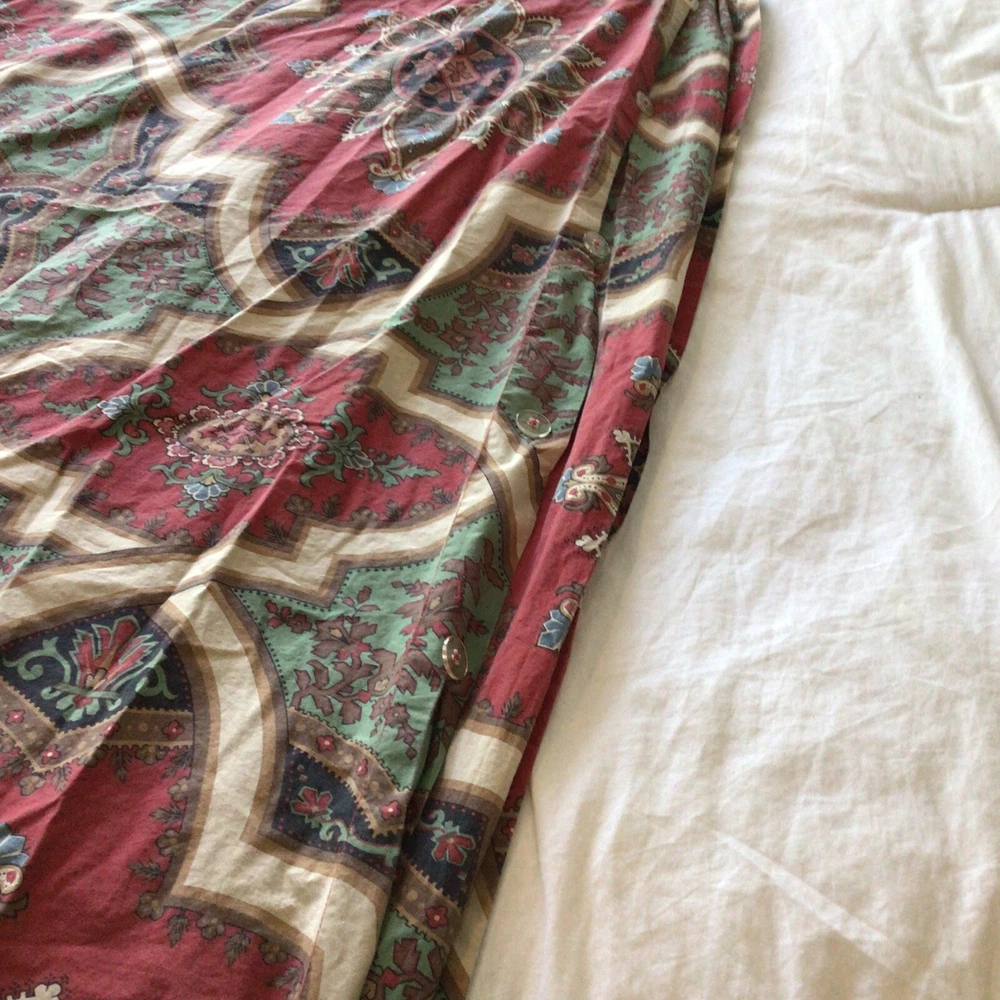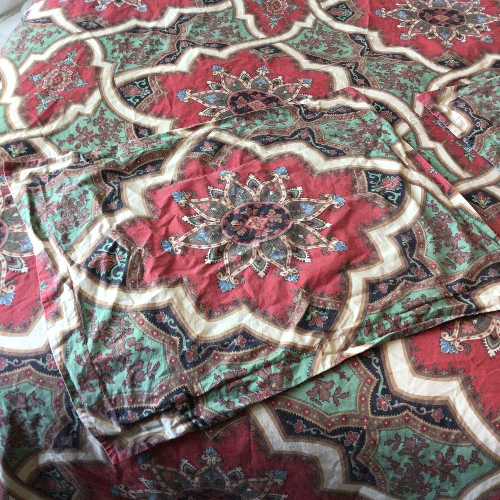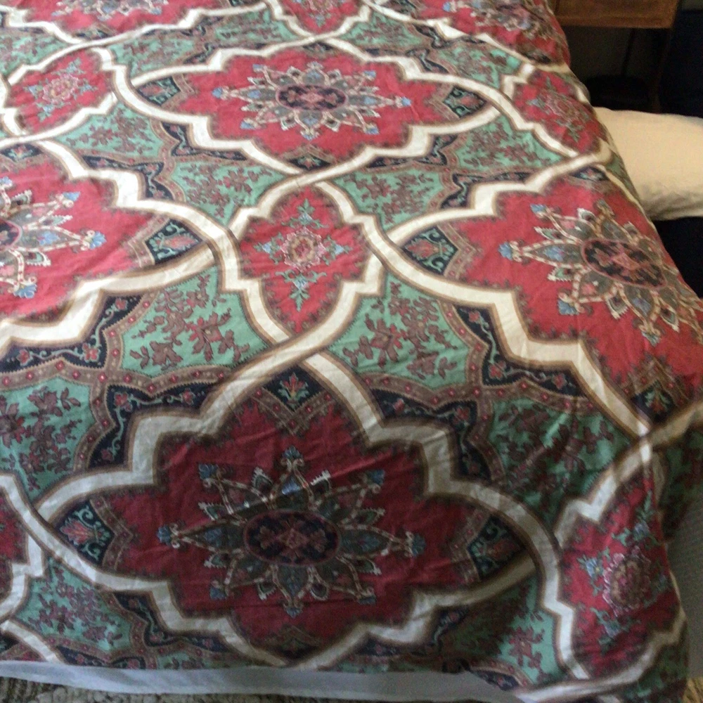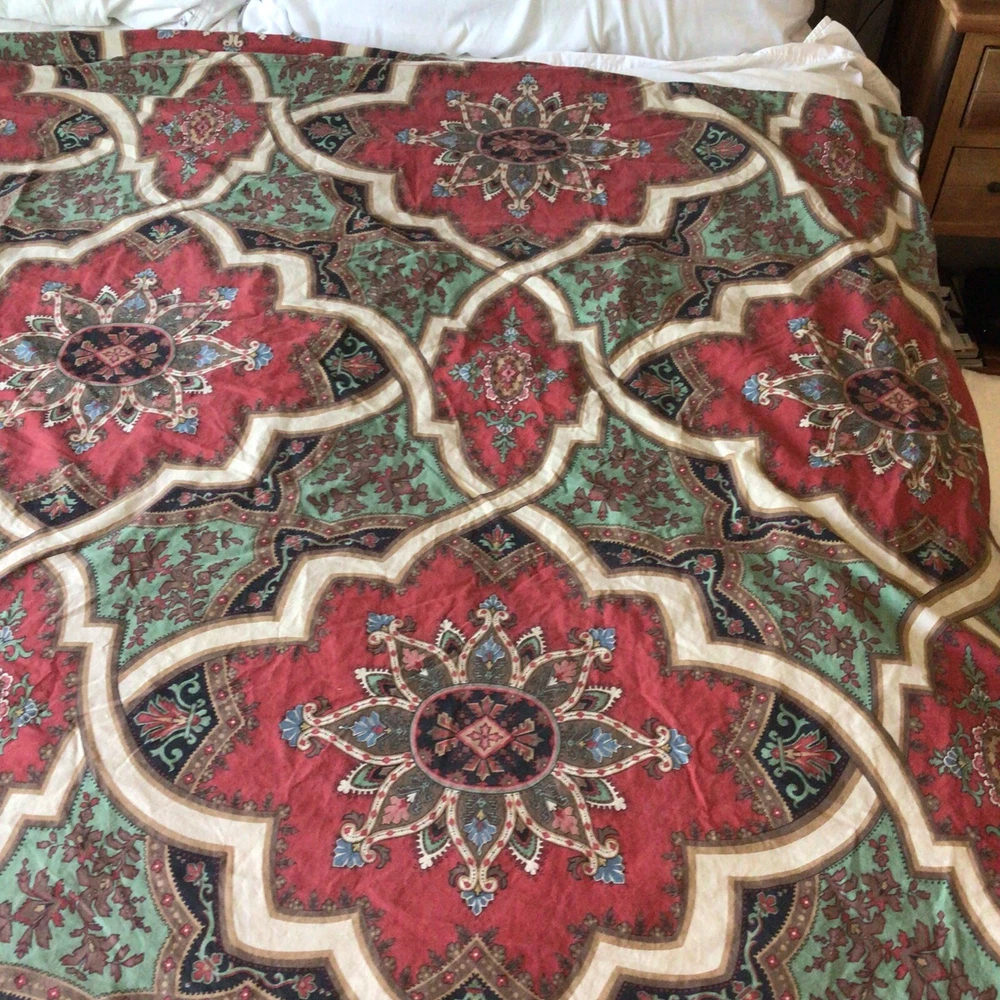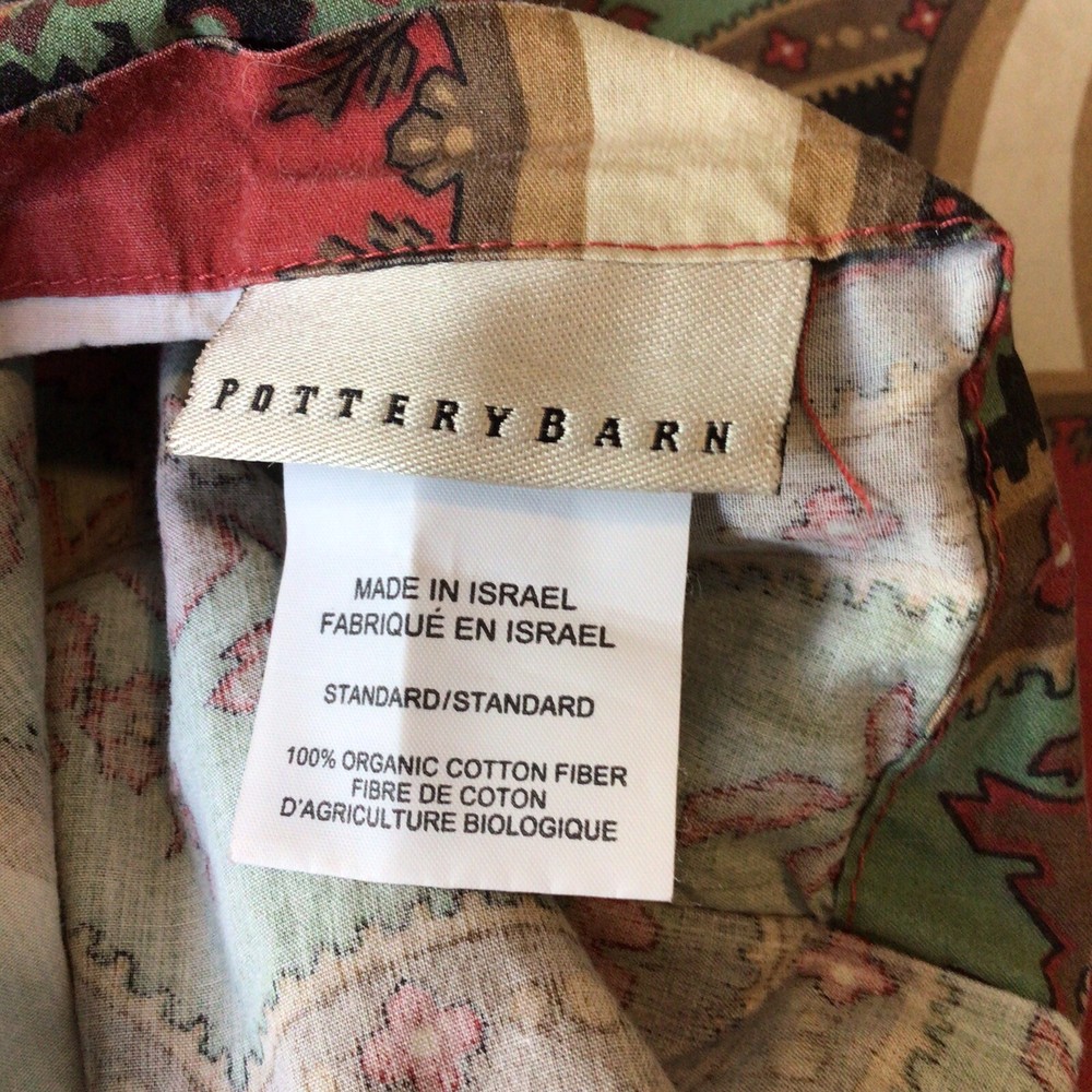 Pottery Barn Caesarea Israel Full/Queen Duvet Cover and 2 Shams Organic Cotton. GUC. Slight fade which adds to character. No apparent stains, tears. Washed. Not ironed. Please refer to and enlarge photos for details