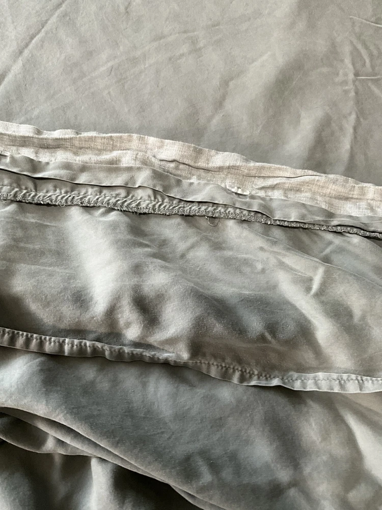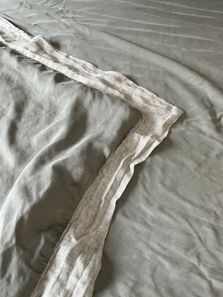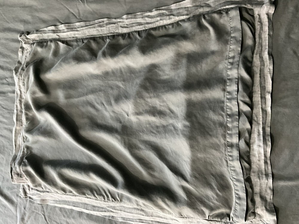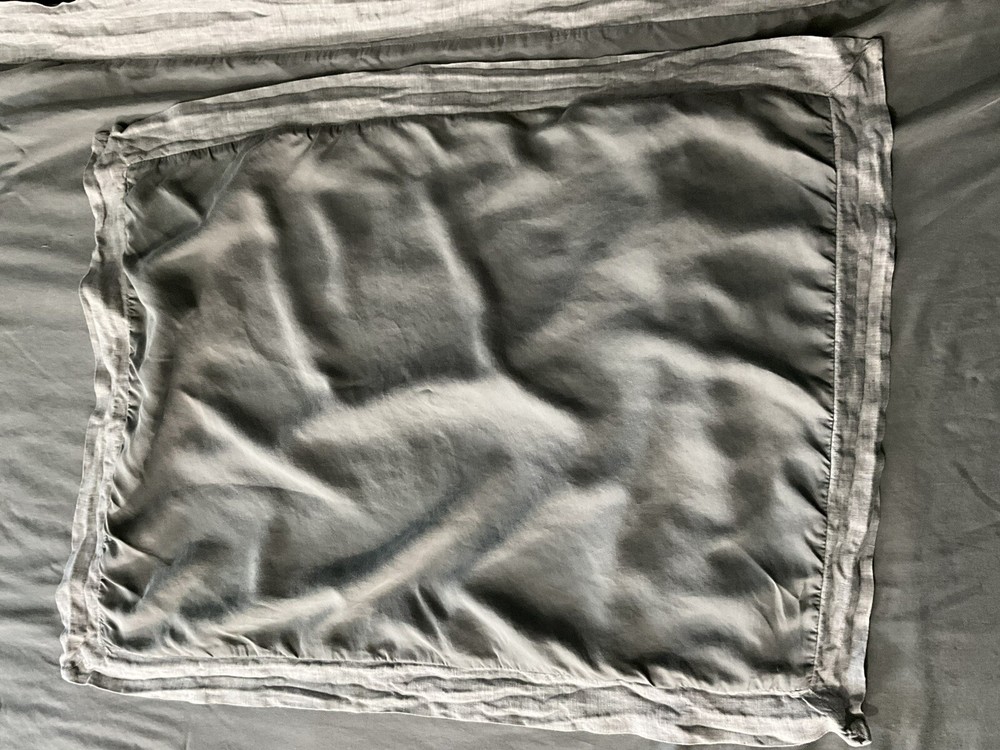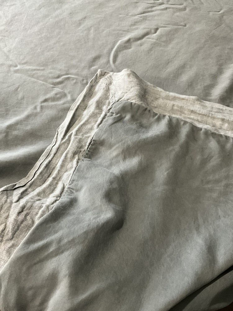 Pottery Barn California King Tencel Duvet Cover in Gray with Linen Border, part of the Casual TENCEL collection. This modern duvet cover set includes 2 standard pillowcases and features a solid color pattern. The set is machine washable, reversible, and has ties inside to secure the duvet. Made with TENCEL™ and linen border , it offers luxury and comfort for your bedroom decor.