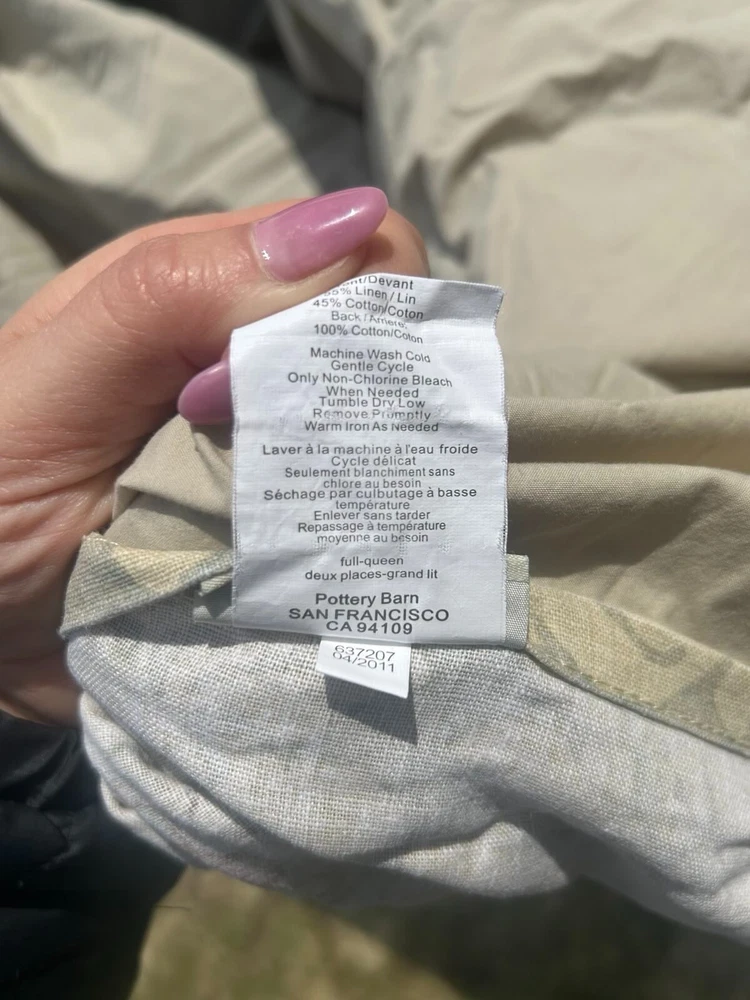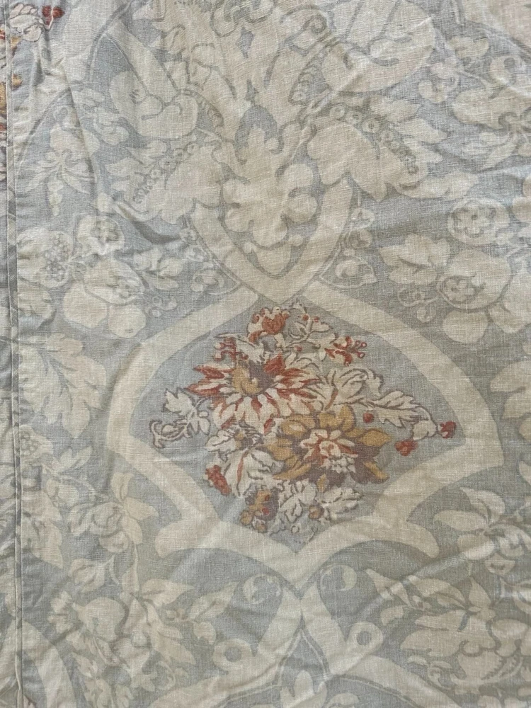 Pottery Barn Camilla Beige Floral Medallion Full/Queen Duvet Cover Linen Cotton There are a few small faint stains as well as a tiny hole near the front edge. See pictures for details.