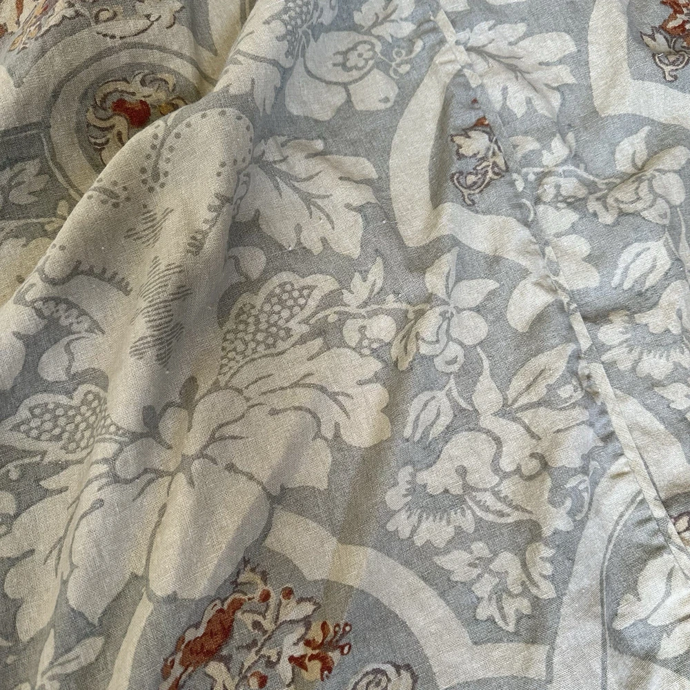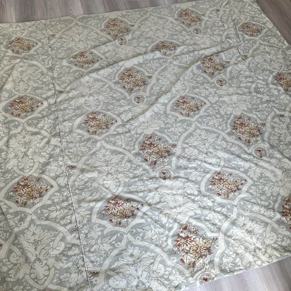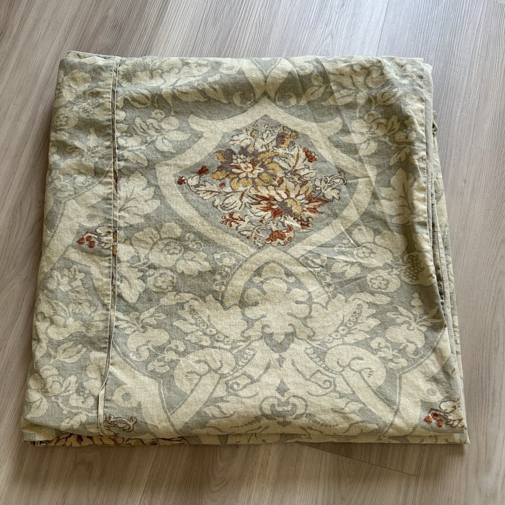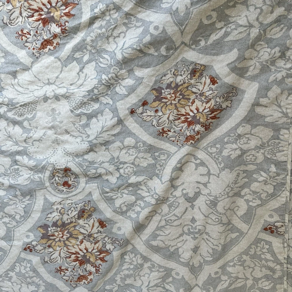 Queen Some faint light spots on solid side as shown A good amount lint/feathers from washing - especially inside Pilling on linen side as shown Sold as is Duvet cover only. Buttons closed...