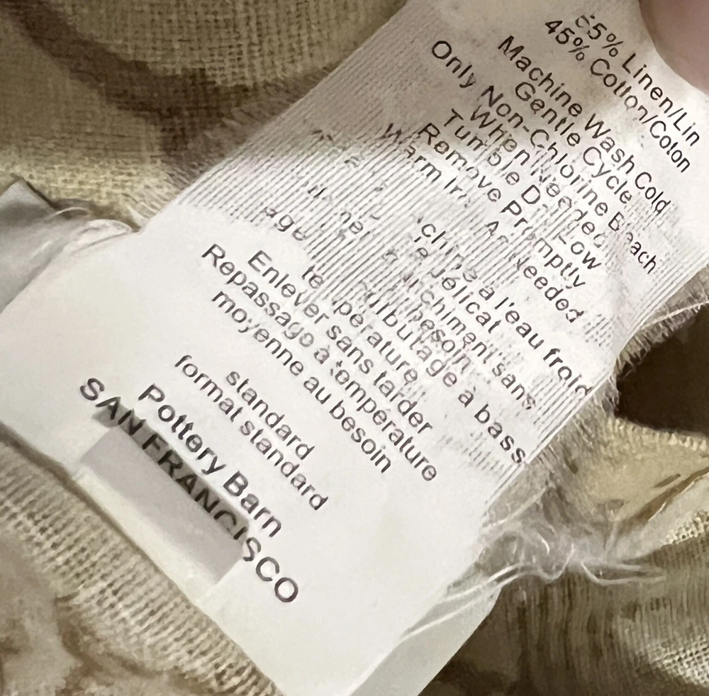 Soft sheets in perfect condition! Typical high quality material from Pottery Barn. The blue mailing bags that it was shipped in were great too. Product was well packaged.