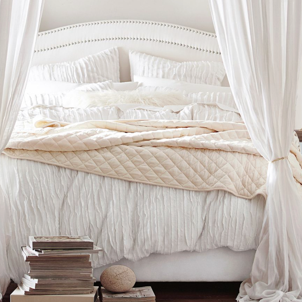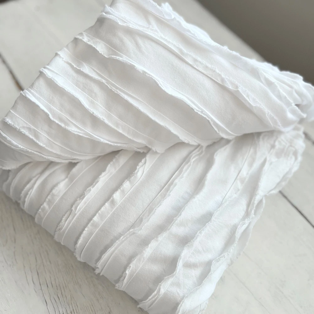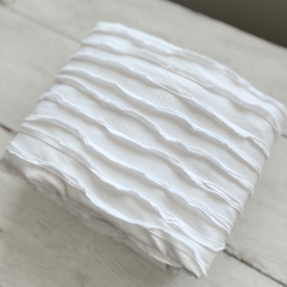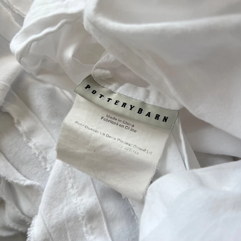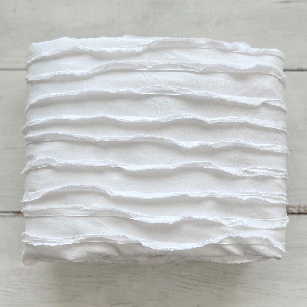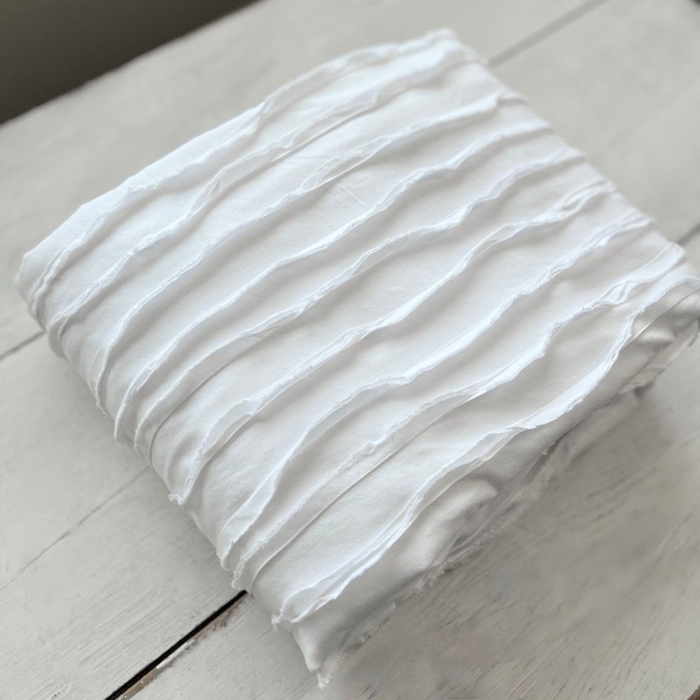Pottery Barn Camille Ruched Textured Duvet Cover Striped Color: White Size: Full/Queen Gently Pre-owned Condition. Washed, Pressed and ready to use. Will be packaged with care and shipped via USPS. All items are guaranteed to be as described. They will arrive fresh and ready for use. Please see our feedback for experience of others. Photos are of actual item you will receive w/ exception of a stock photo or two from an online catalog. If you have any questions before the sale, please reach out for clarification. Message me with any questions!