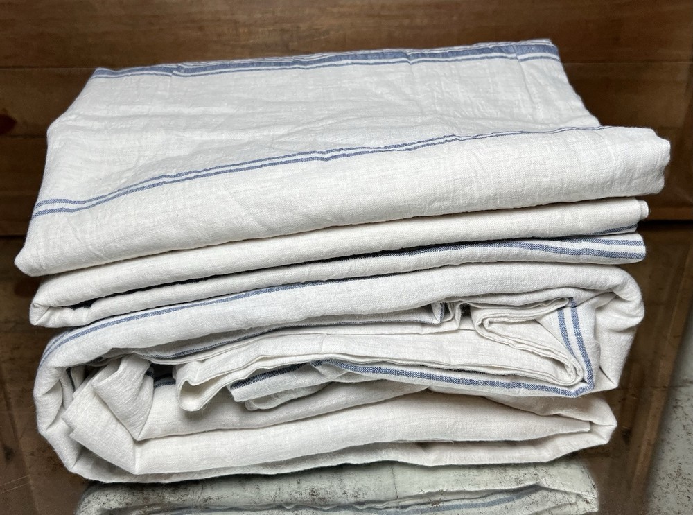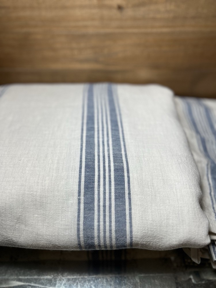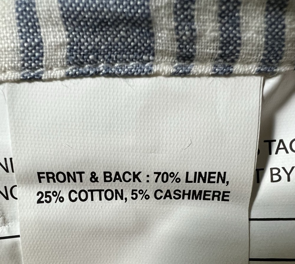 This duvet and shams are sold by pottery barn but made by Villa by classic home Material: Expertly crafted of 70% linen, 25% cotton, and 5% cashmere. Secure Design: Duvet features hand-sewn button closures and inside ties to hold duvet in place. CARE AND MAINTENANCE Linen will get softer with every wash. Machine wash in cold water separately on gentle cycle. Use only non-chlorine bleach, if needed. Line or tumble dry on a low temperature.