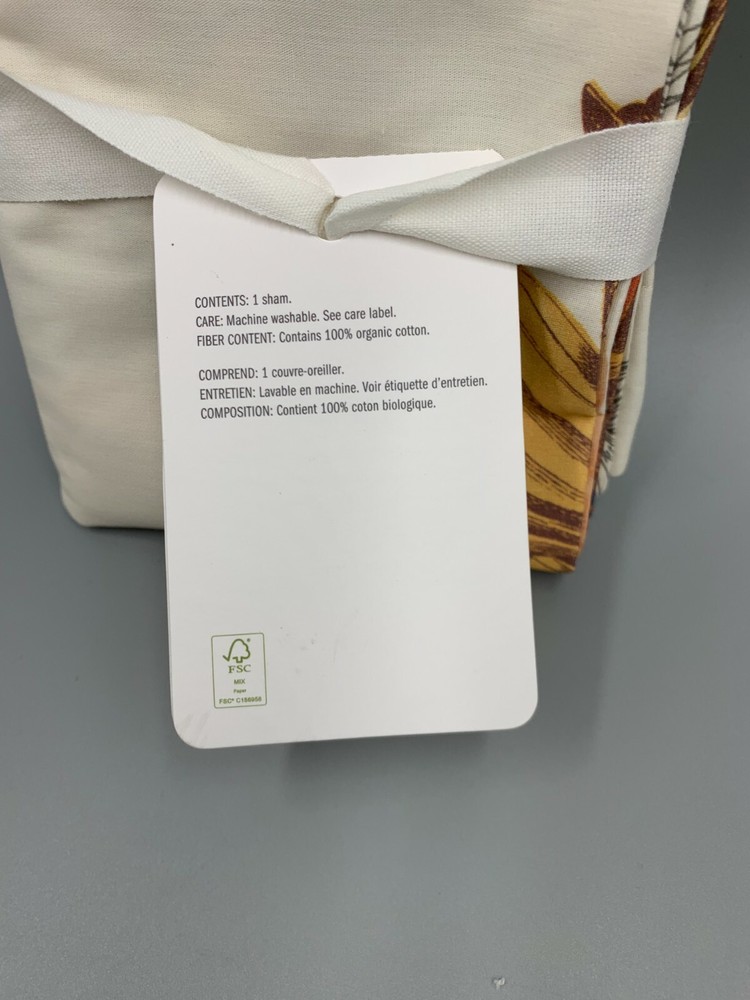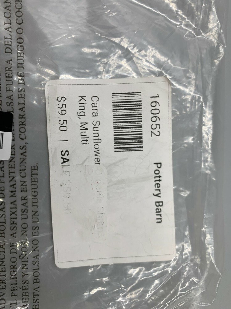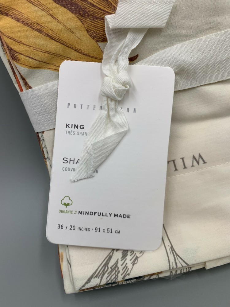 Pottery Barn Cara Sunflower Organic Sham King, Multicolor D70 Item is brand new. Auction includes one sham. Made of 100% organic cotton. Sham features an envelope closure. 200-thread count Machine wash. Imported. DIMENSIONS Sham King: 20" h x 36" w CARE AND MAINTENANCE Machine wash in warm water; gentle cycle. Use only non-chlorine bleach when needed. Tumble dry on low heat; remove promptly. Warm iron as needed.