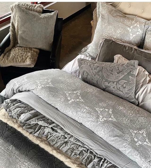 POTTERY BARN CARINS DUVET Intricate medallions in a tonal palette give our Carins Duvet Cover a shimmery effect. The soft, crisp cotton percale is smooth and firm, and cool to the touch, making it a perfect layer on the bed on warm nights. Made of 100% organic cotton. Reverses to same. Duvet features a hidden button closure with inner ties that keep insert in place; sham features an envelope closure. Machine wash. Imported. Auction is for QUEEN DUVET with TWO STANDARD Shams. Items are BRAND NEW and in ORIGINAL PACKAGING! A d d i T i O N a l P h o T O s A v a i L a B Le U p O n R e Q u e S T PURCHASED DIRECTLY FROM POTTERY BARN. AUTHENTIC.