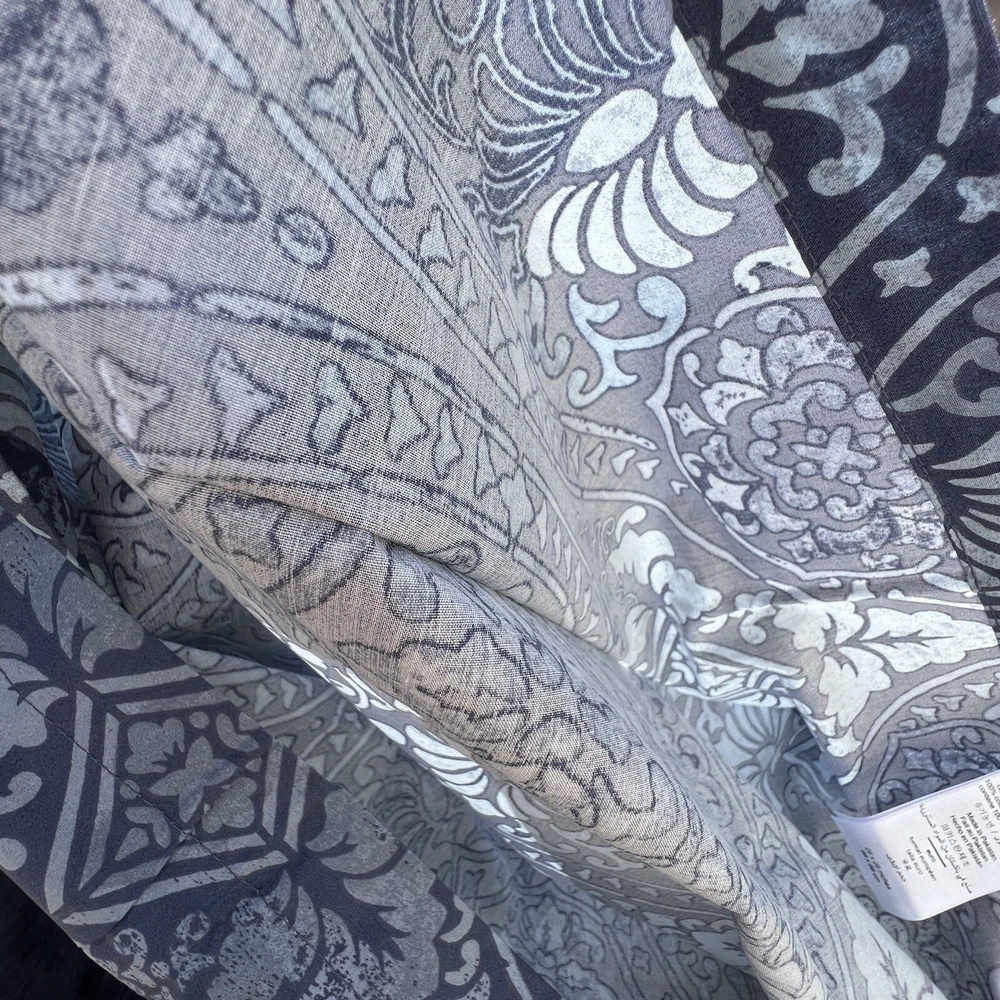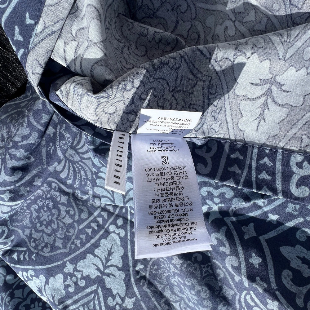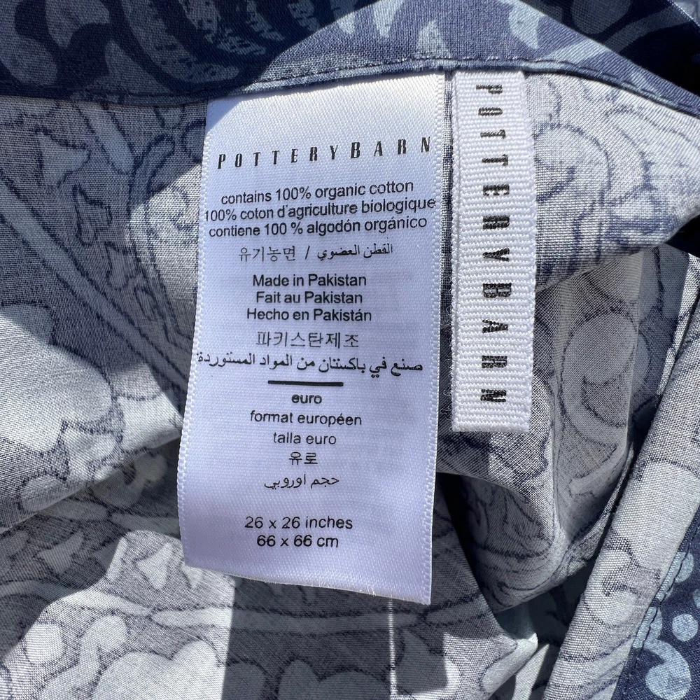 This sham is a gorgeous addition to my bedroom—soft, high-quality organic cotton with a beautiful Carins print. The blue shade is rich and vibrant, and even though it’s pre-owned, it looks brand new. Fits my Euro pillow perfectly and adds a cozy, stylish touch. So happy with this find!