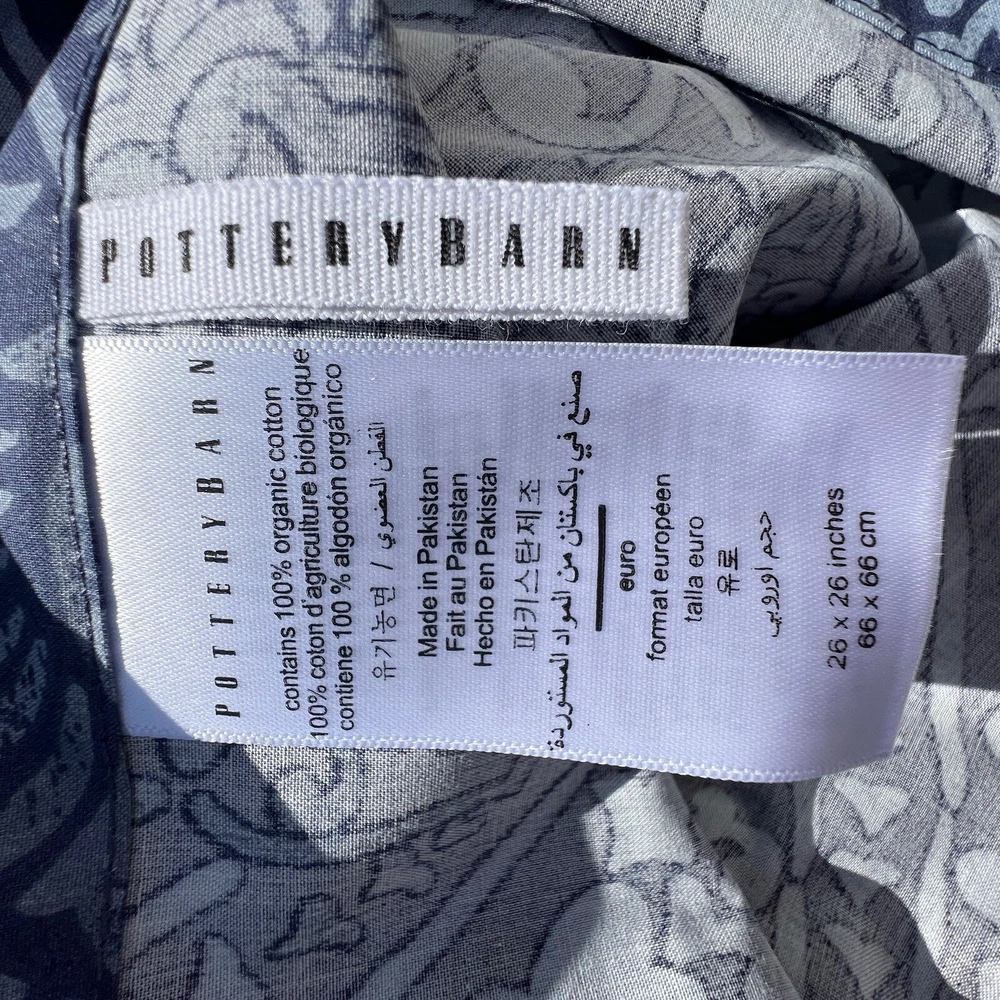 Pottery Barn Carins Print Euro Blue Organic Cotton Cushion Sham 26”x26” Pre-owned but non-used.