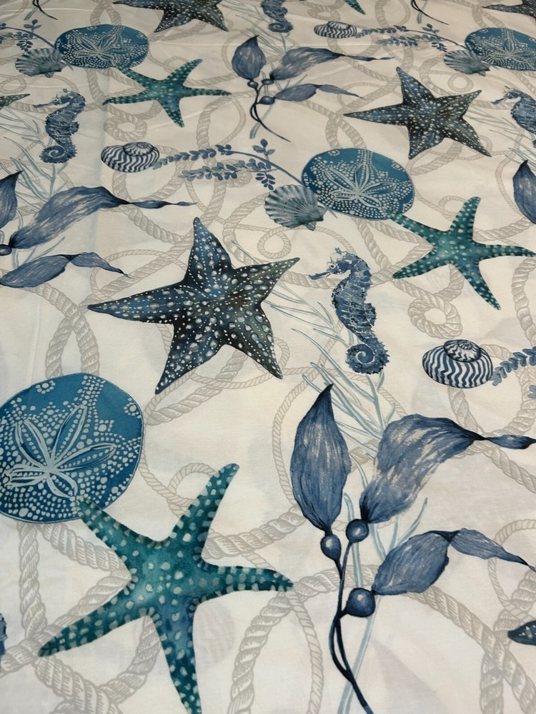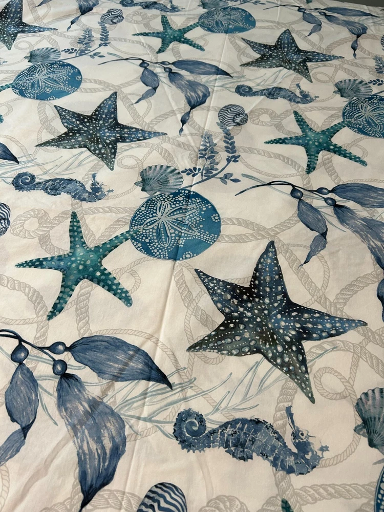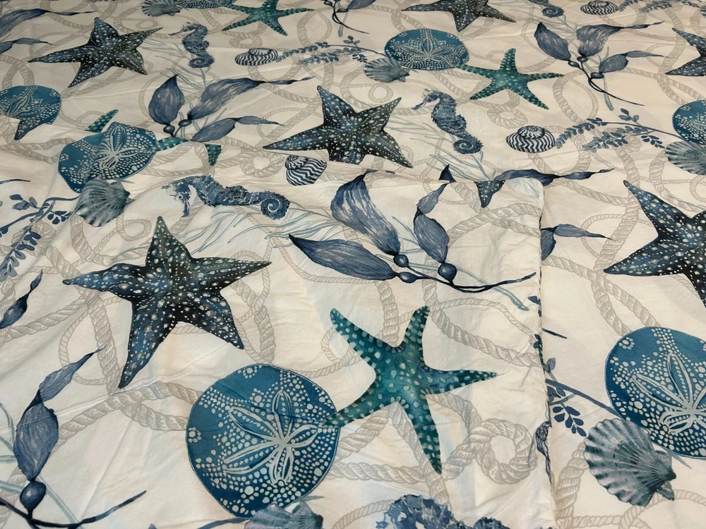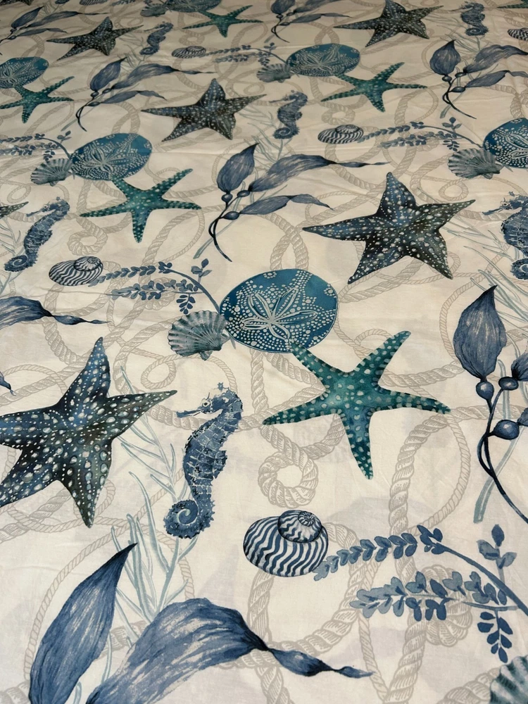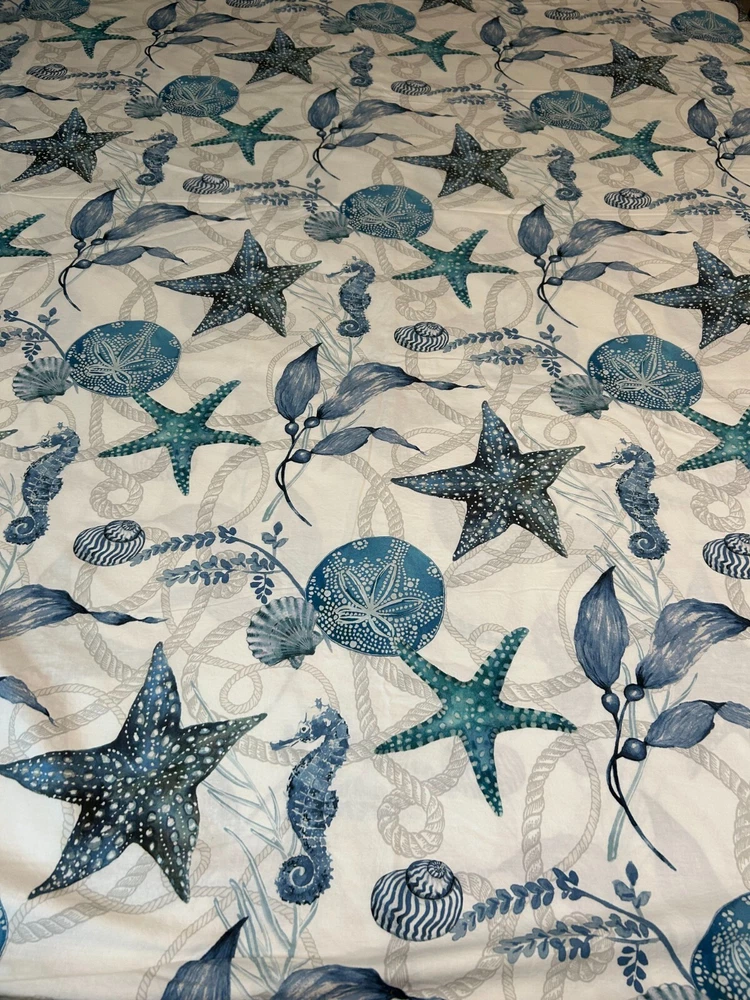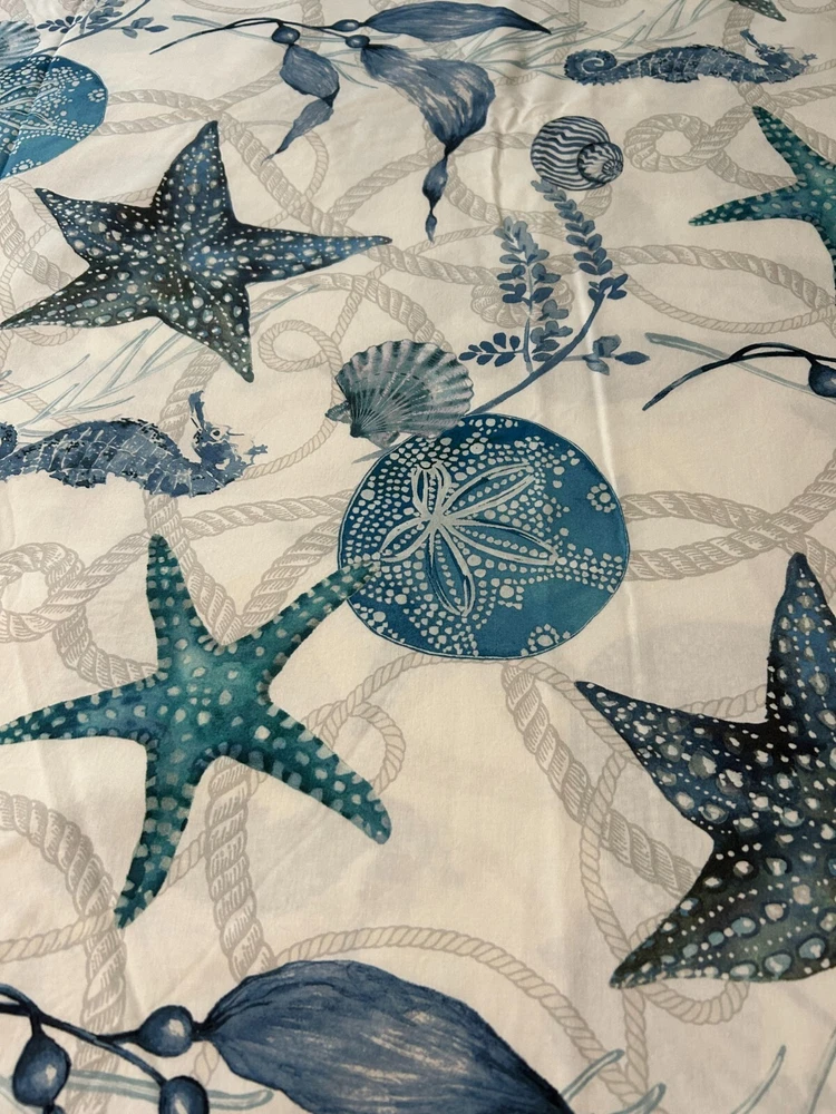 This duvet cover is soft, stylish, and in perfect condition! The coastal seahorse design adds a breezy, relaxed vibe to my bedroom. The 100% cotton feels luxurious and washes well—no fading or shrinking. Love the mix of blue, gray, and white—it pairs easily with other decor. Great find for a cozy, beachy look!